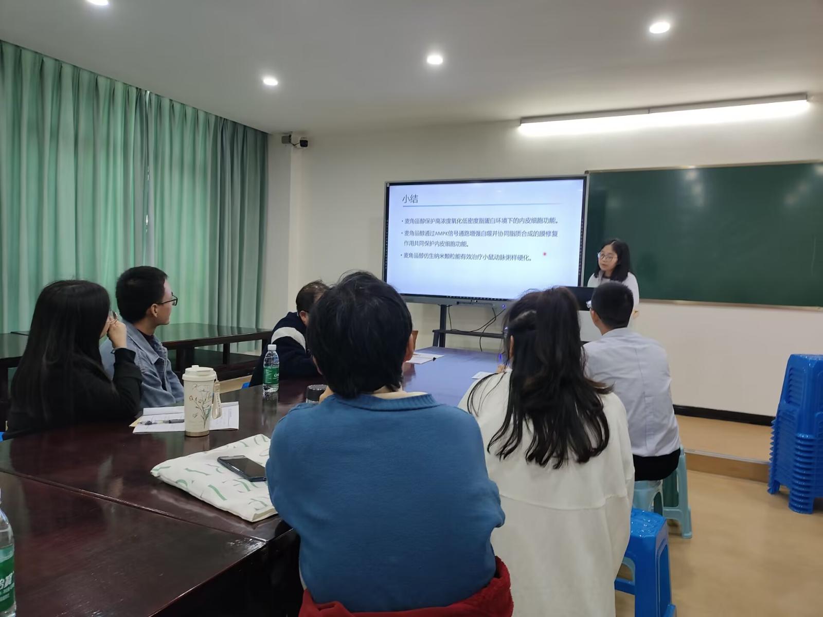 王湘秀博士从动脉粥样硬化的发病机制与现有治疗局限入手,系统阐述了纳米药物的设计原理与其团队的技术创新,并结合实际案例展示了药物靶向递送的应用成效。在交流环节中,现场教师踊跃提问,王博士就相关科研问题作了细致解答,学术氛围热烈。