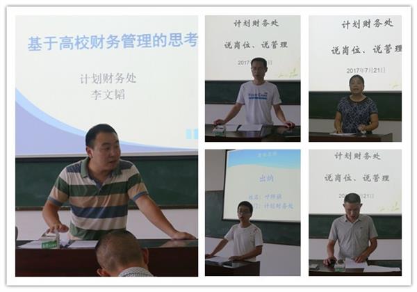 7月21日下午,计划财务处在B208教室开展说岗位、说管理活动。内容主要围绕人才评估以及自身岗位、管理工作中的经验、问题、后续工作思路展开。