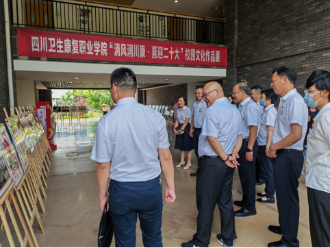 自贡市市委组织部部务委员宋代平、市卫生健康委员会机关党委书记文铭生、学院班子成员集中参观了作品展。