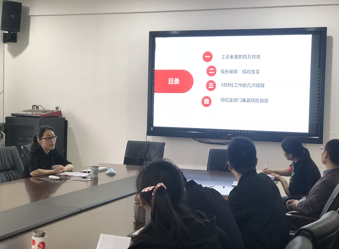 为一体化推进“不敢腐、不能腐、不想腐”,4月17日上午,bat365官方网站纪检监察处在502会议室对计财处全体工作人员开展了定制式警示教育。