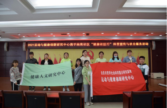在建党一百周年之际,为践行“我为群众办实事”活动,弘扬科学精神、推动健康科普、践行科技为民的思想。4月16日,自贡市哲学社会科学重点研究基地运动与健康创新研究中心、健康人文研究中心在南苑社区组织开展了2021“健康社区行”科普宣传与社会服务活动。本次活动由姜艳、吴小彩老师带领学院社团联合会青年马克思主义学社9名学生开展,南苑社区百余名社区居民参与此次活动。