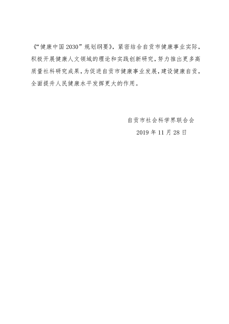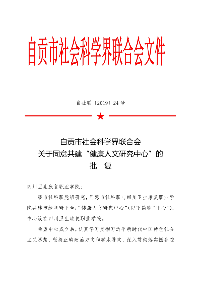 自贡市社会科学界联合会关于同意共建“健康人文研究中心”的批复