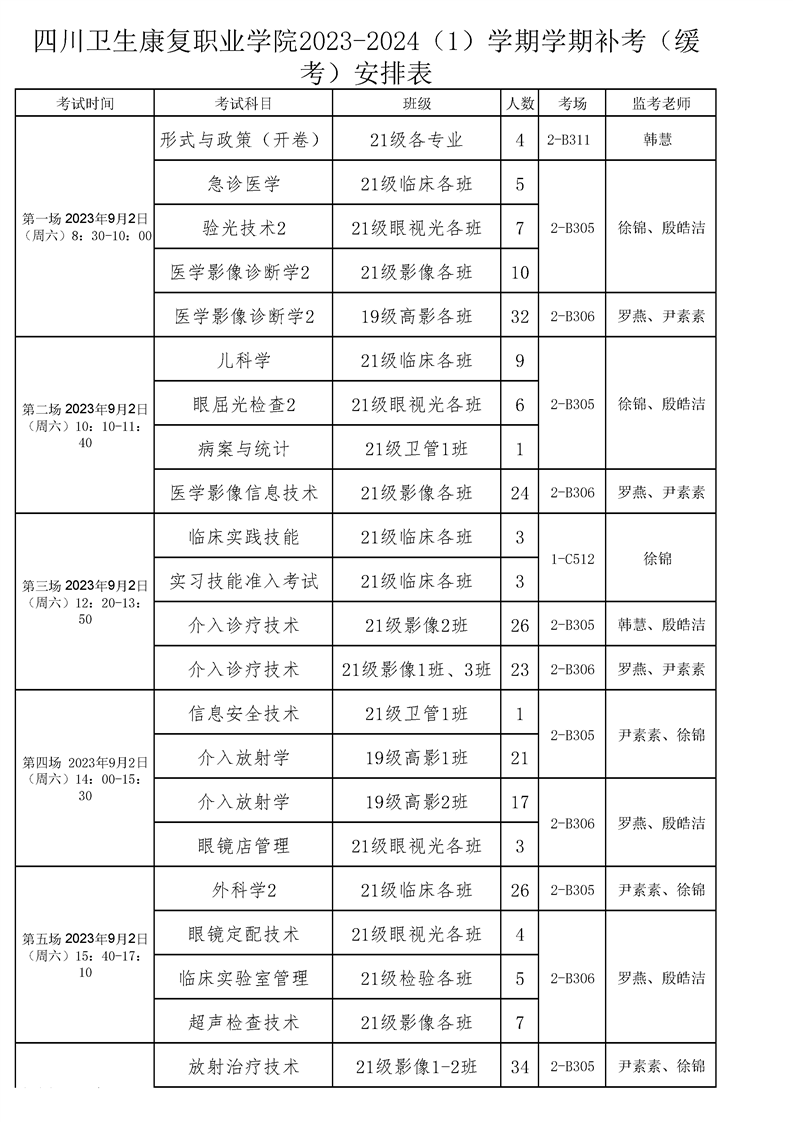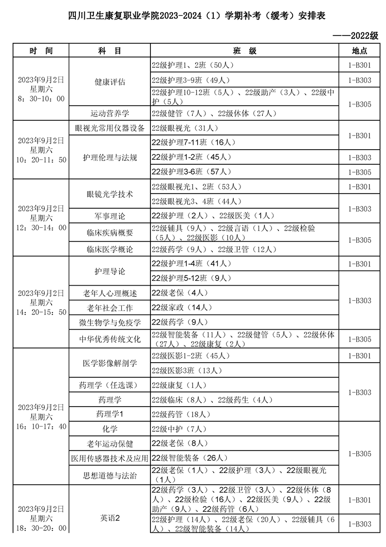 bat365官方网站2023-2024(1)学期补考(缓考)安排表