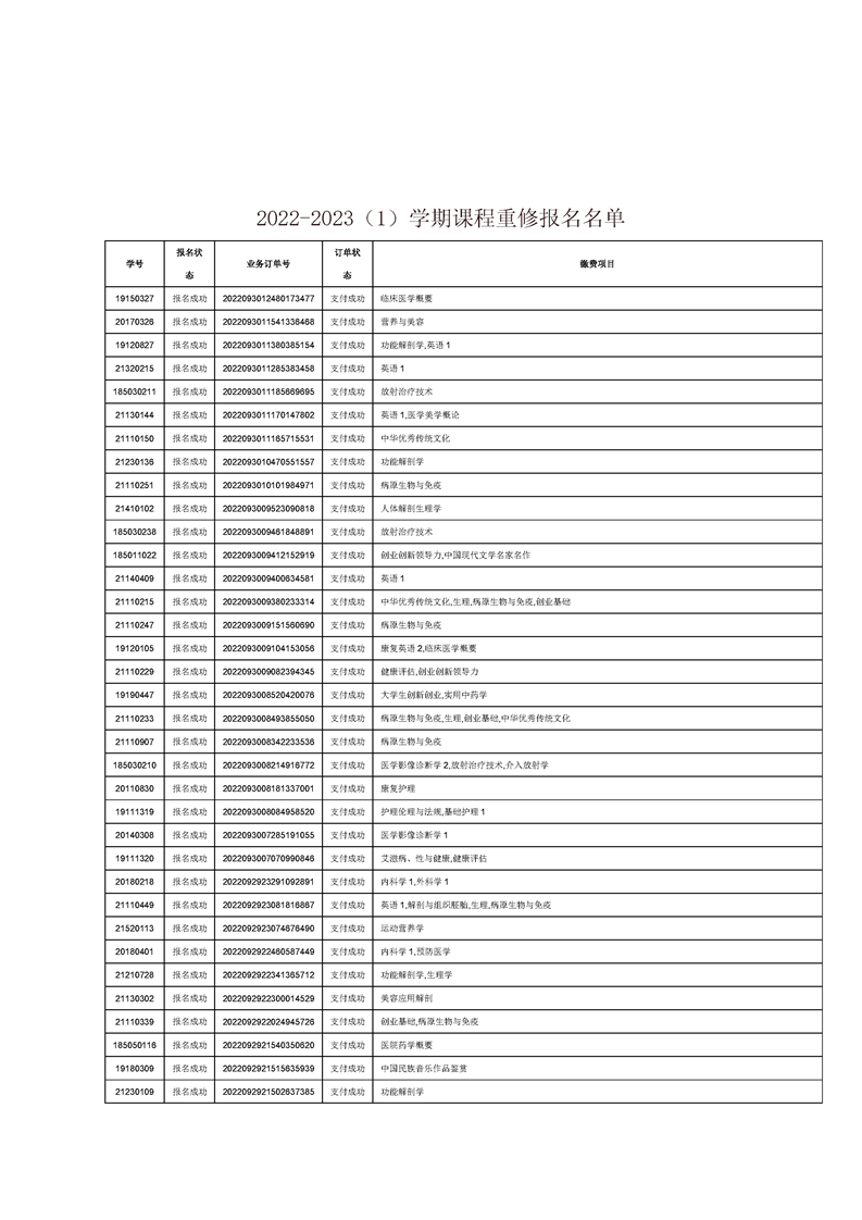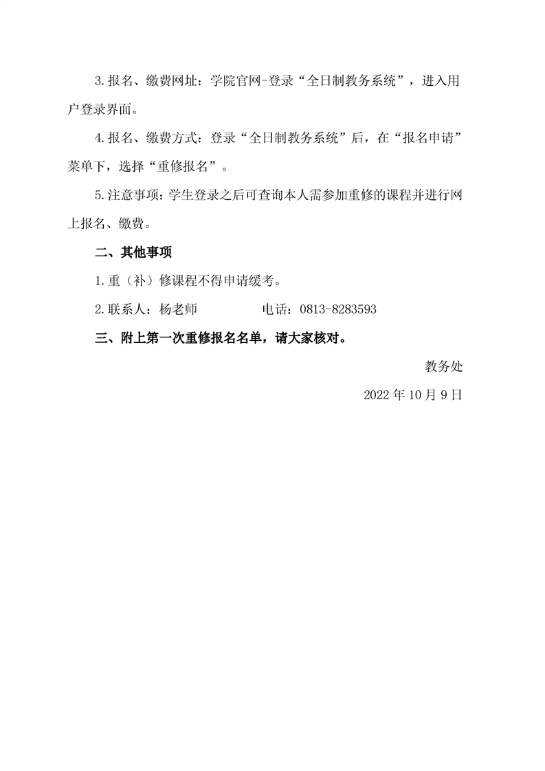 关于2022-2023(1)学期课程重(补)修 第二次报名的通知