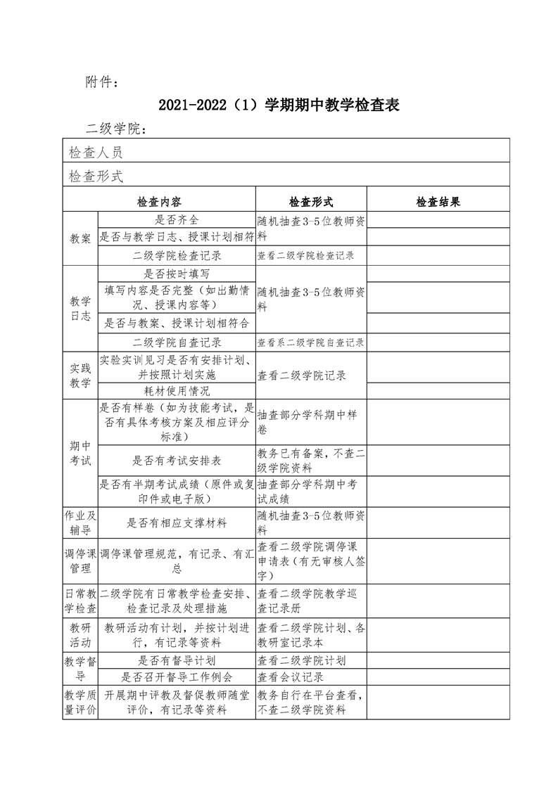 关于2021-2022(1)学期期中教学检查的通知