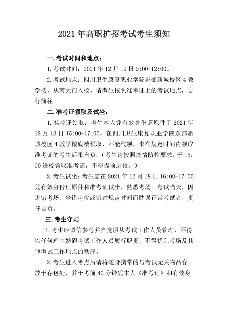 2021年高职扩招考试考生须知