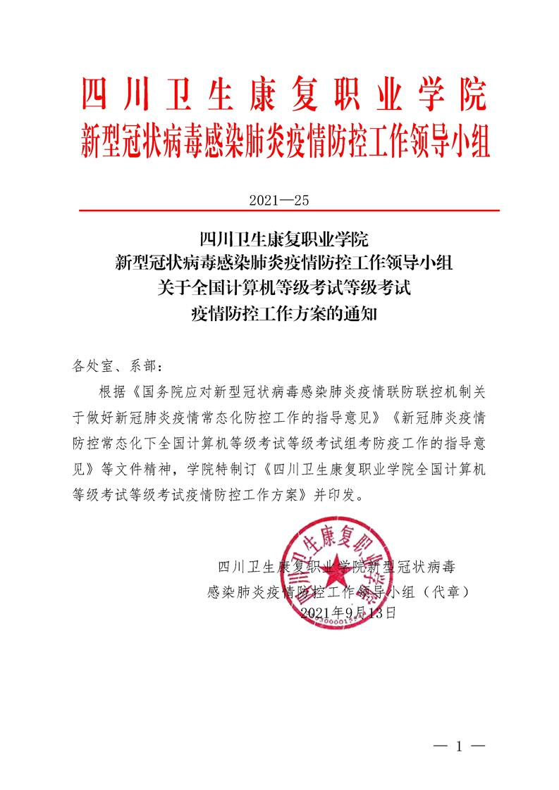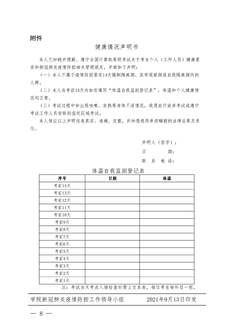 关于2021年下半年全国计算机等级考试疫情防控的通知