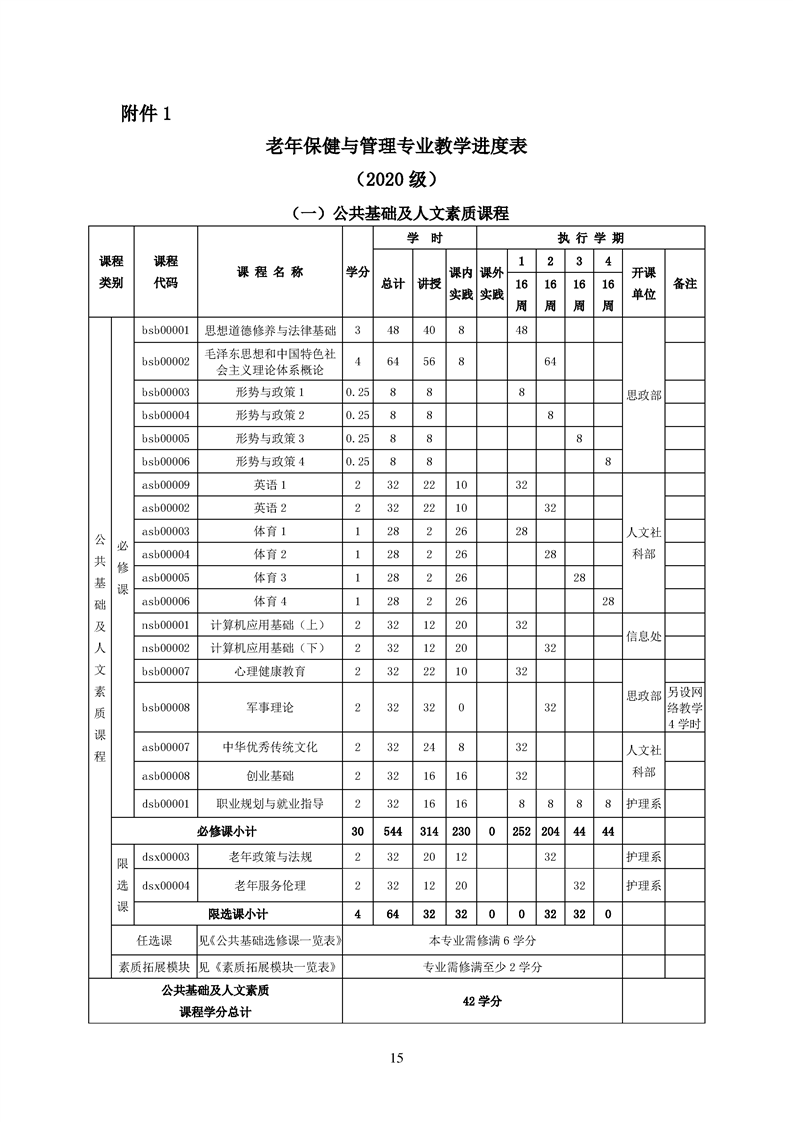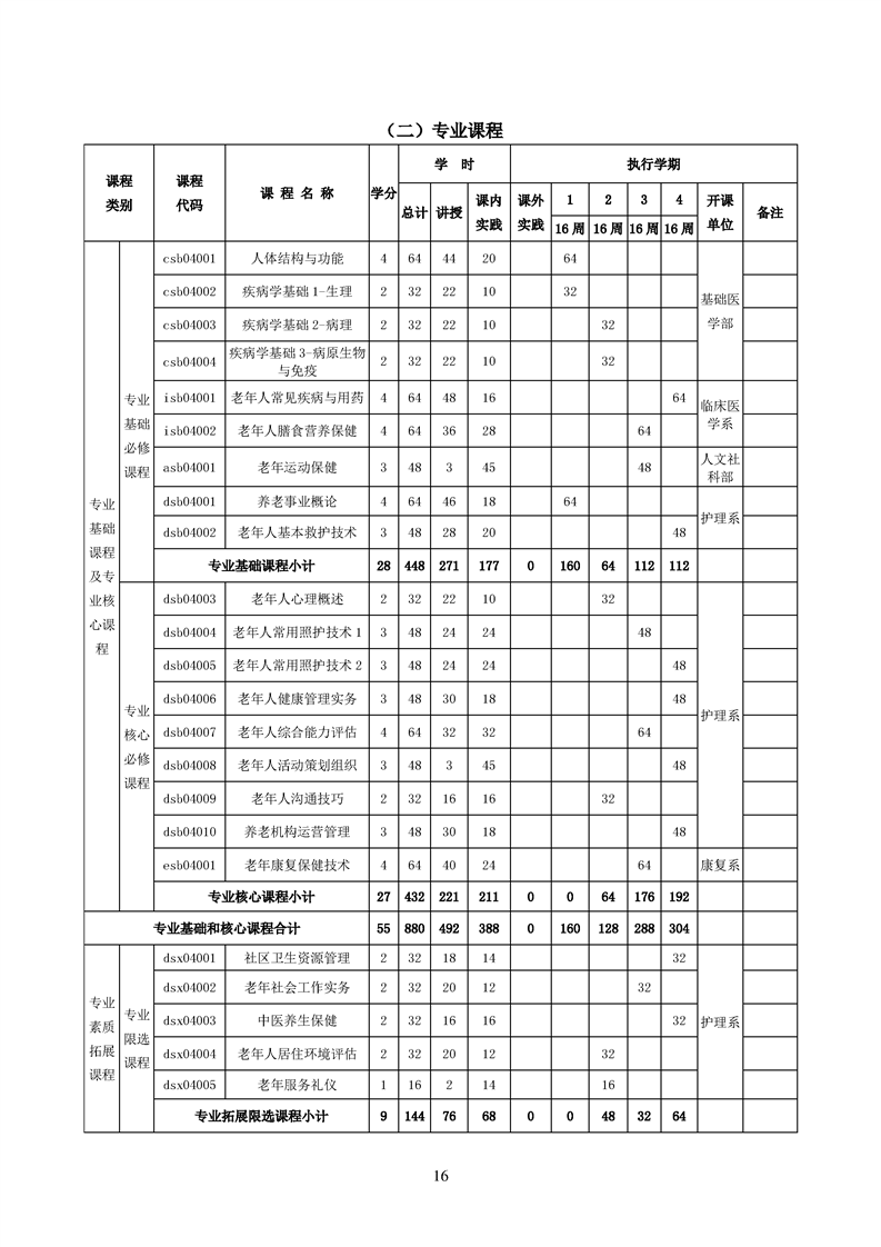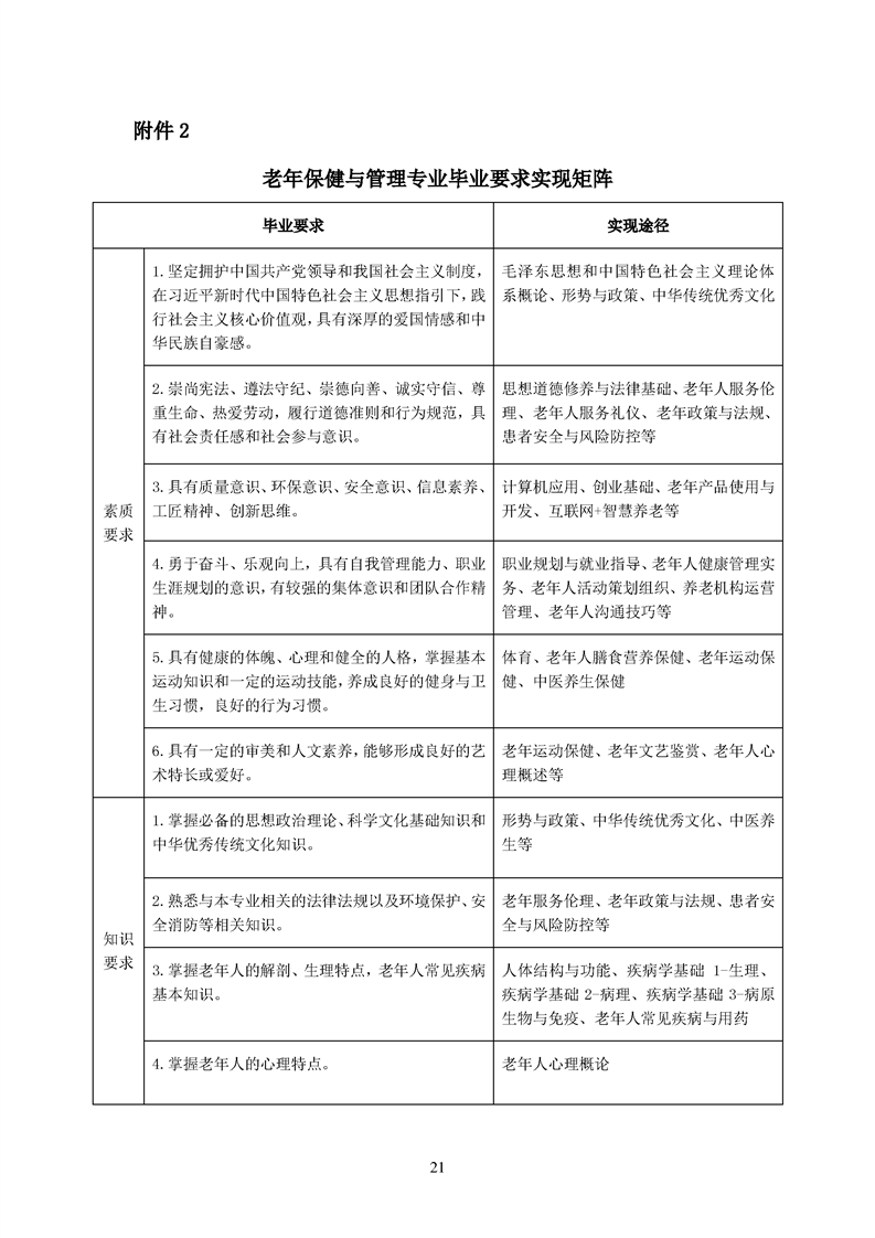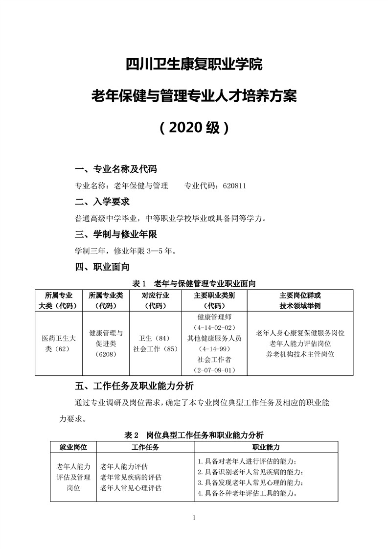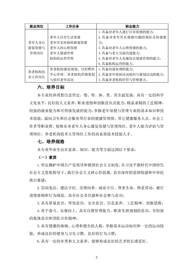 2020版老年与保健管理专业人才培养方案
