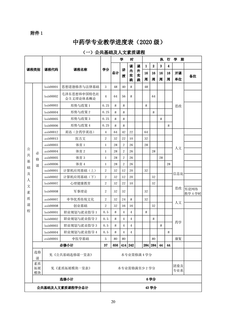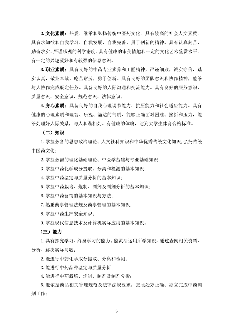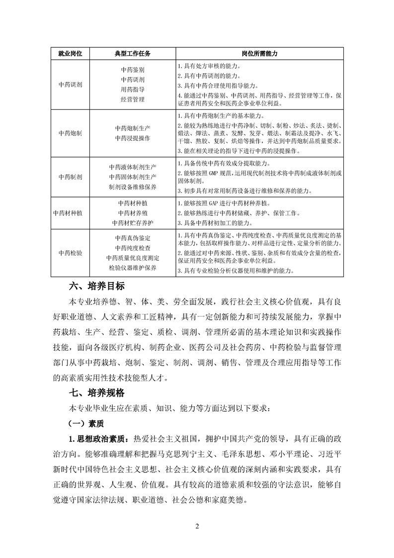 2020级中药学专业人才培养方案