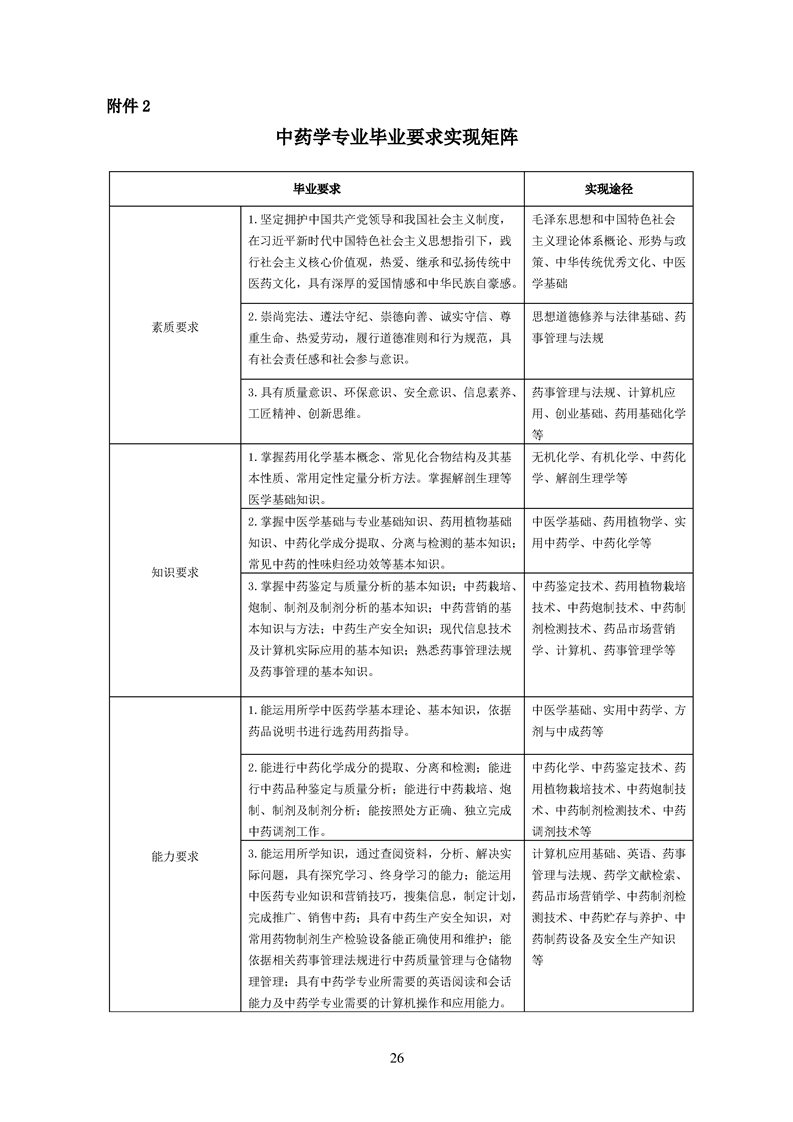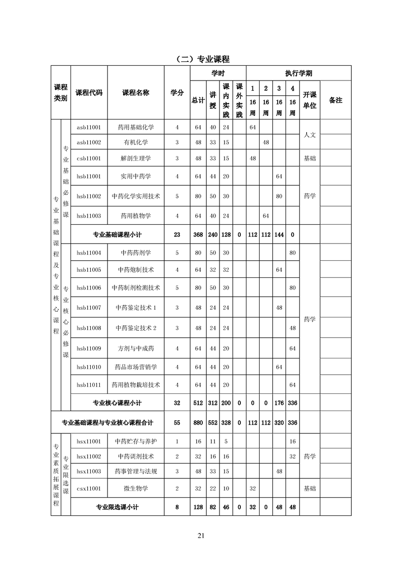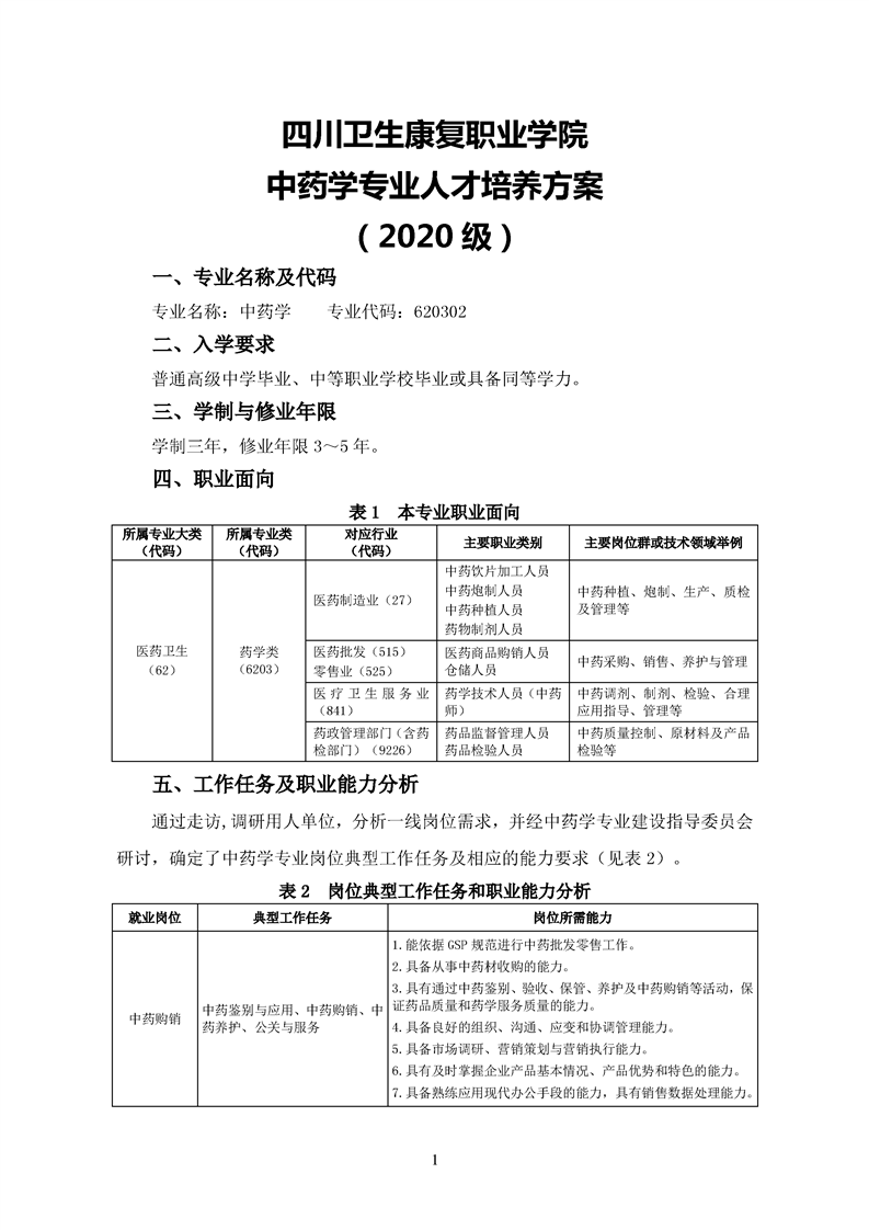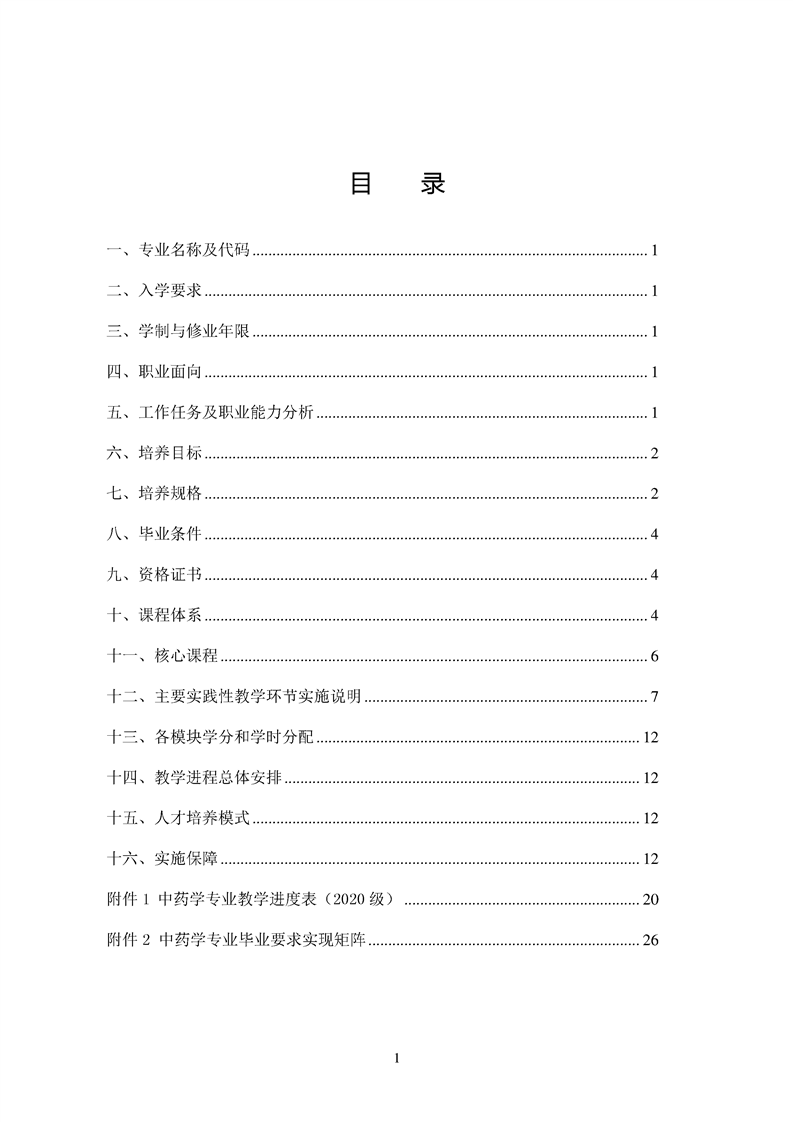 2020级中药学专业人才培养方案