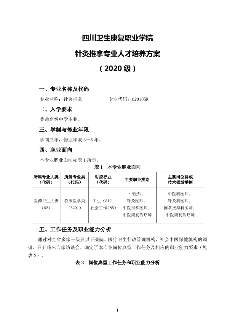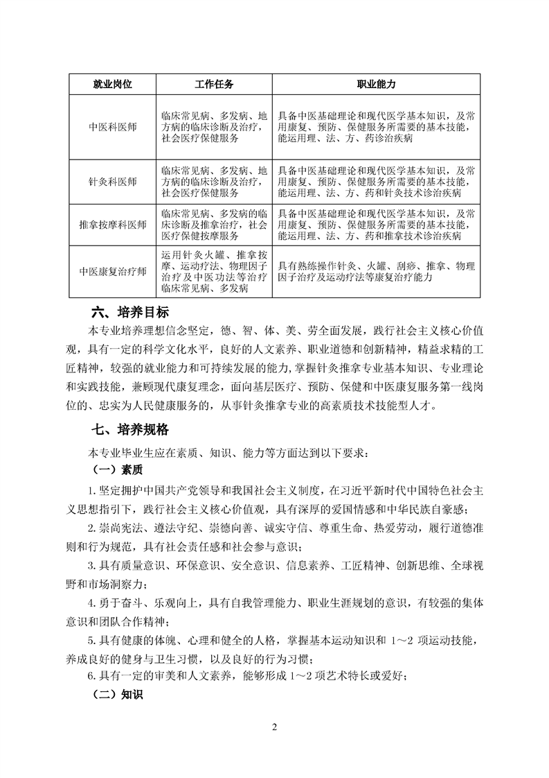 2020级针灸推拿专业人才培养方案