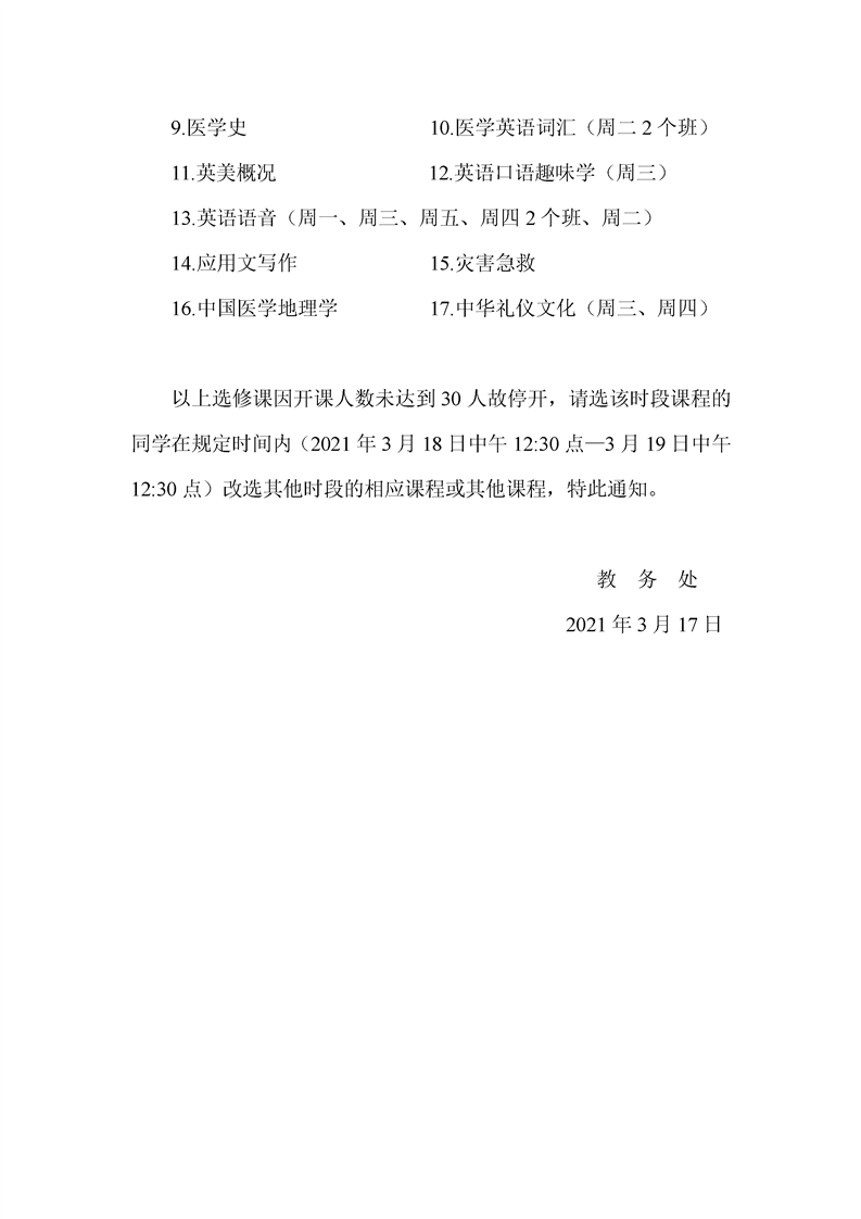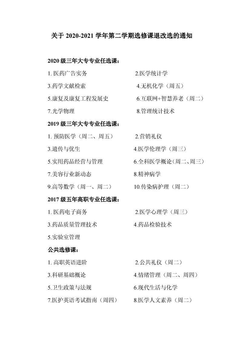 关于2020-2021学年第二学期选修课退改选的通知