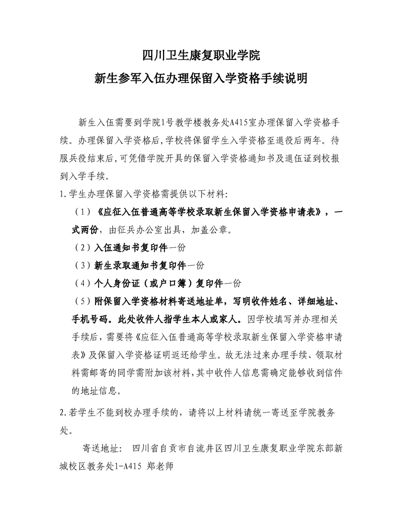 bat365官方网站 新生参军入伍办理保留入学资格手续说明