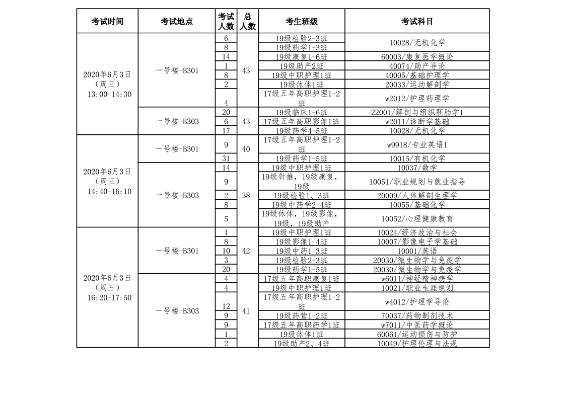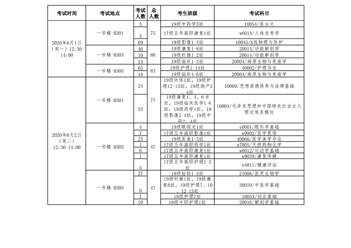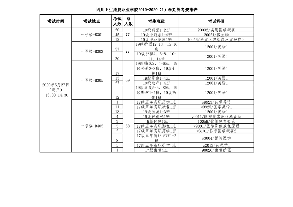 bat365官方网站2019-2020(1)学期补考安排表