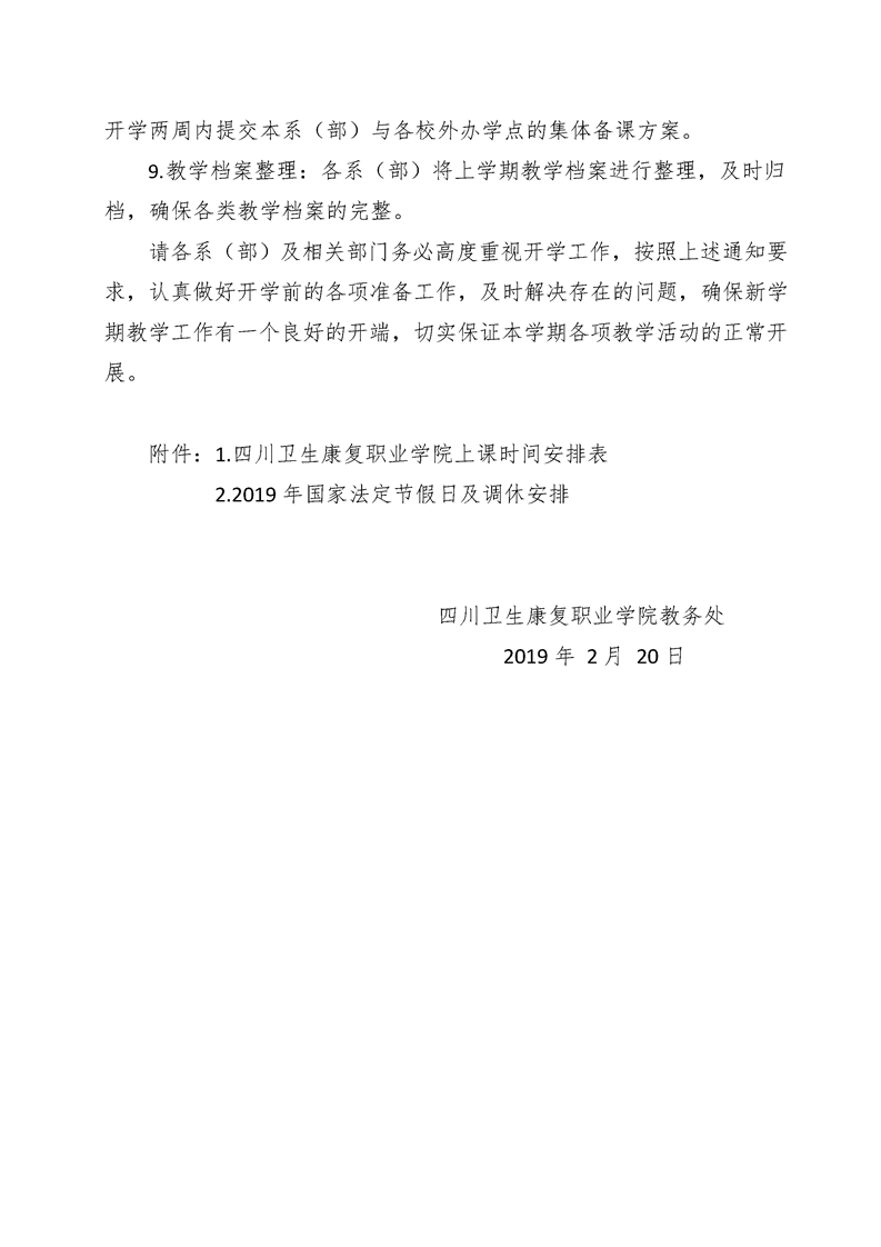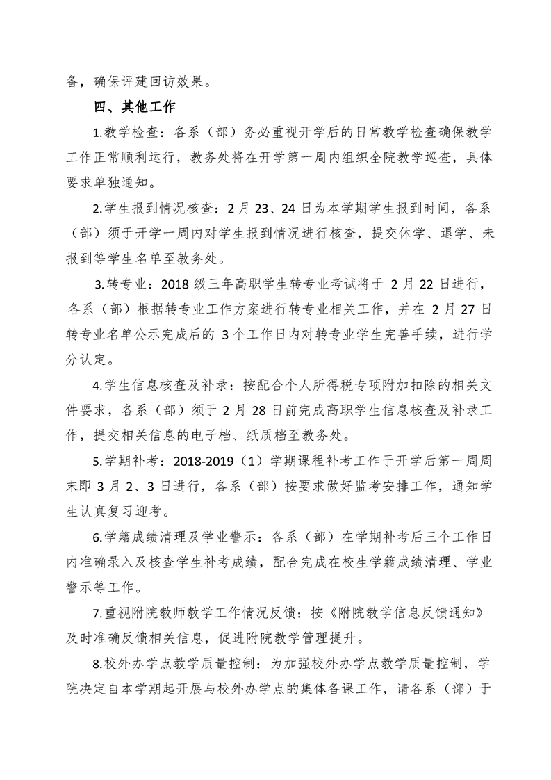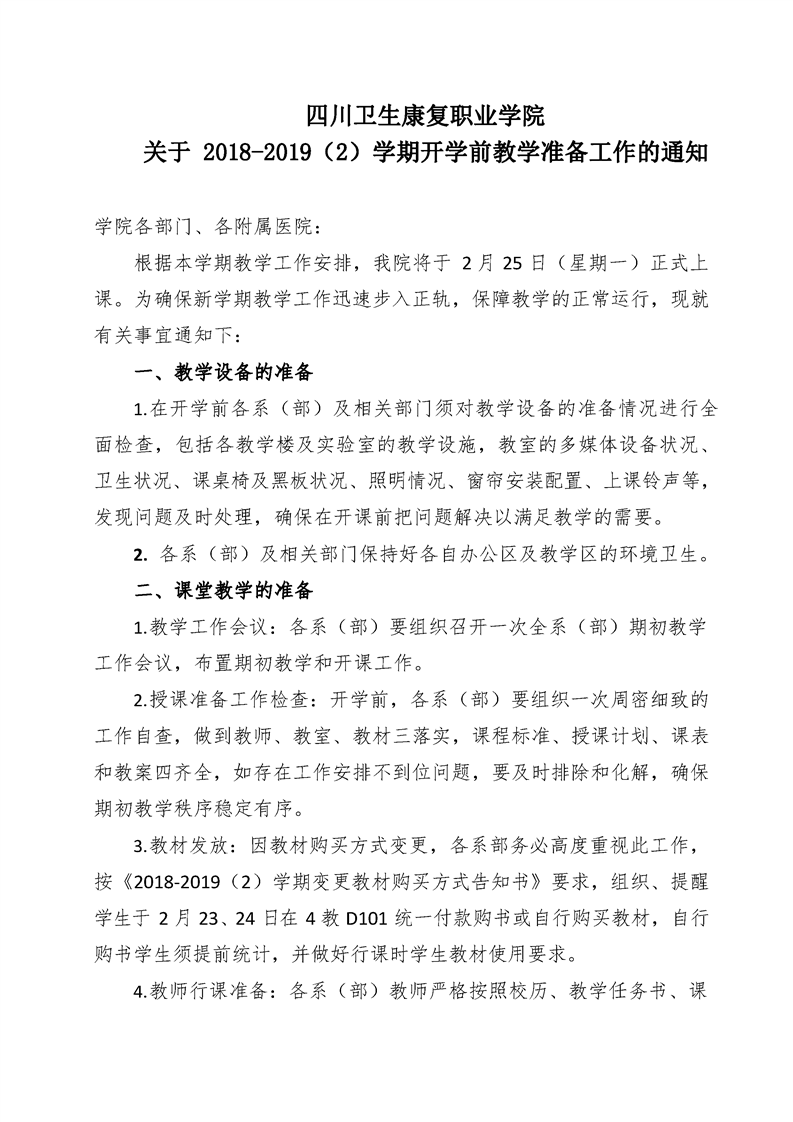 关于 2018-2019(2)学期开学前教学准备工作的通知