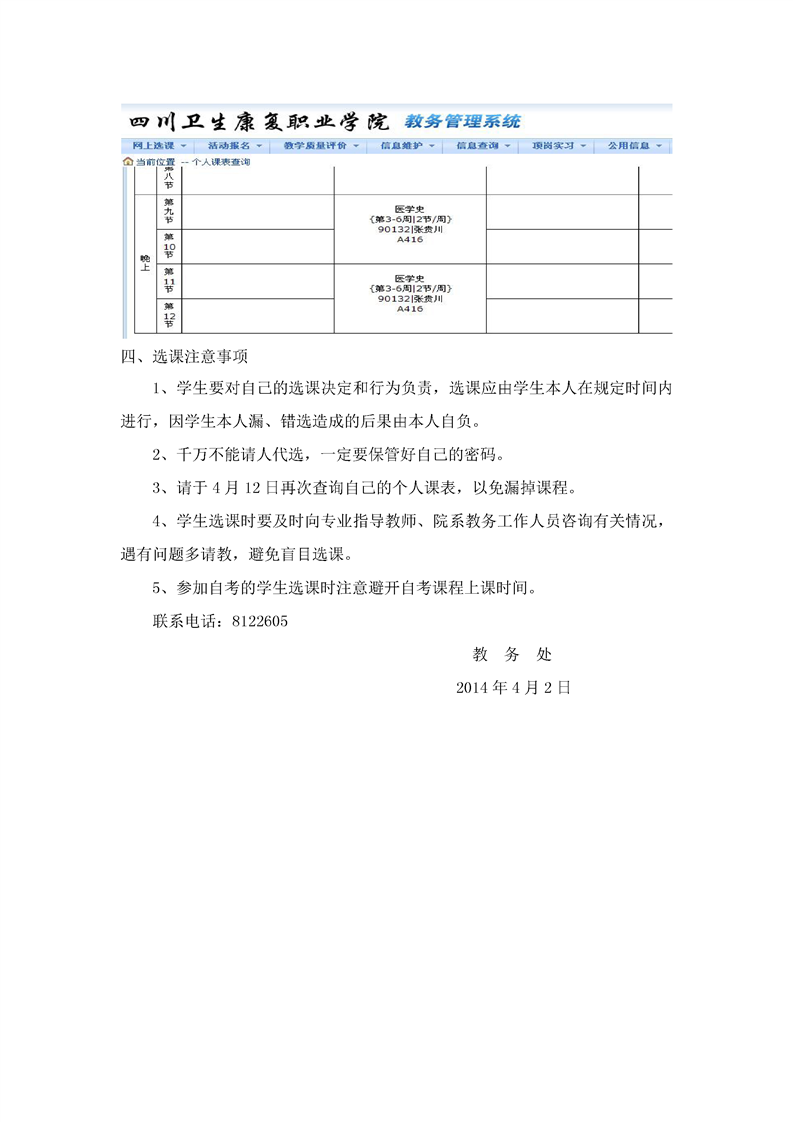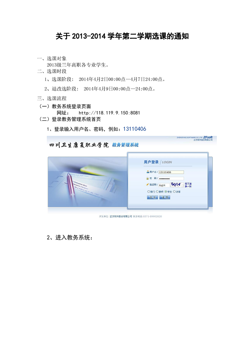 关于2013-2014学年第二学期选课的通知