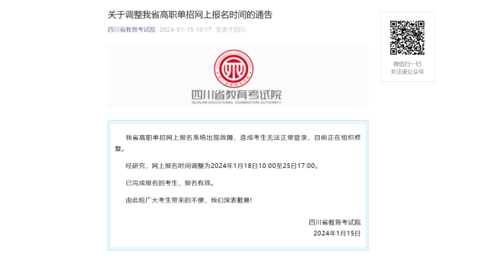 接到四川省教育考试院通知,现将单招考试报名时间调整通知发布到bat365官方网站教务处官网,请各位考生查收。