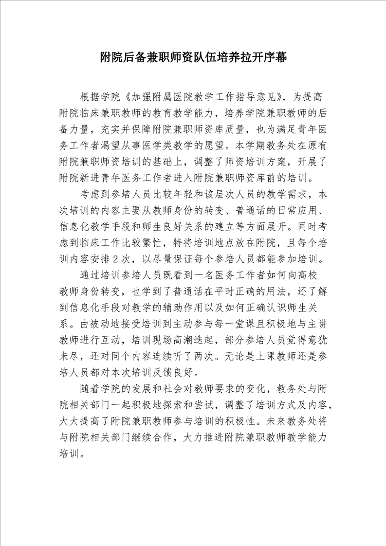 附院后备兼职师资队伍培养拉开序幕