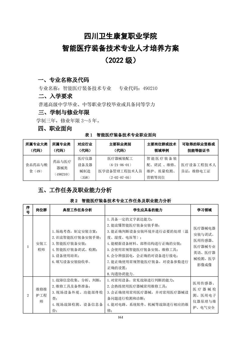 智能医疗装备技术专业人才培养方案(2022级)