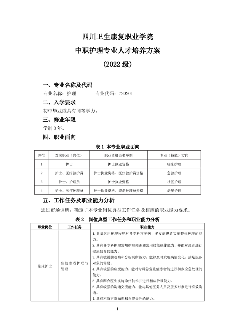 bat365官方网站中职护理专业人才培养方案(2022级)