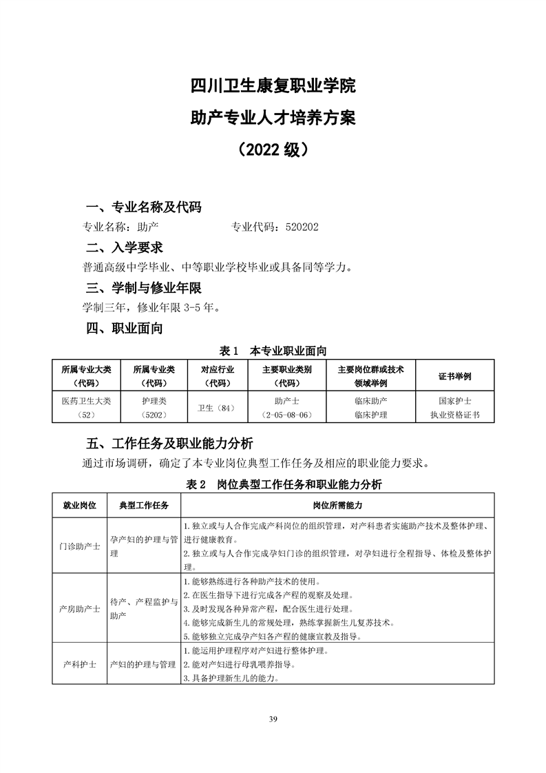 助产专业人才培养方案(2022级)