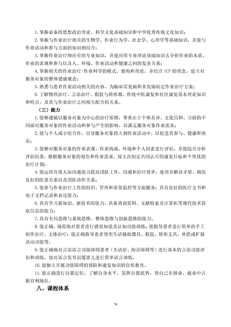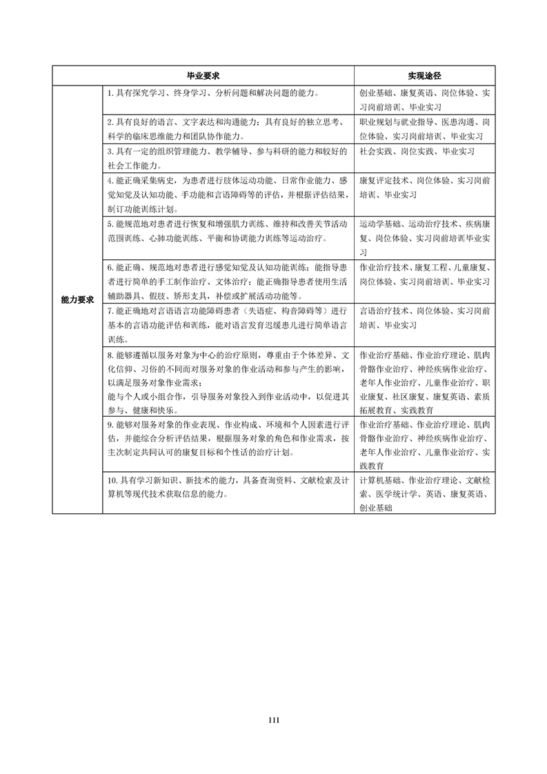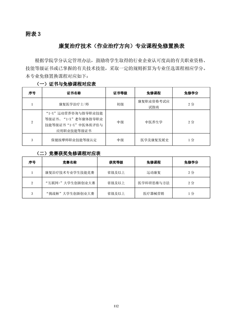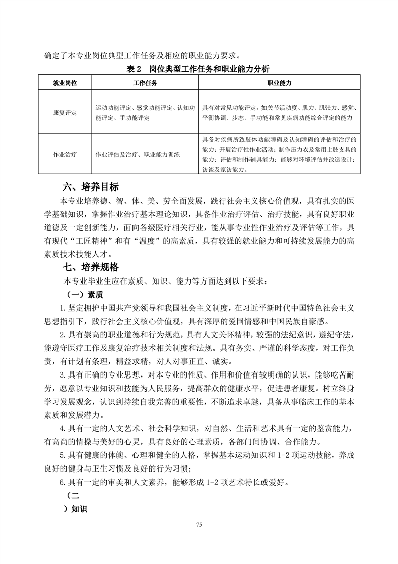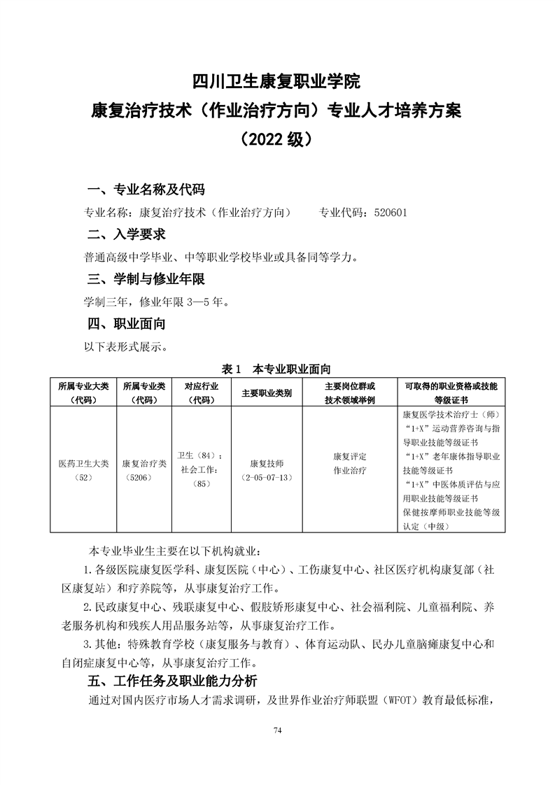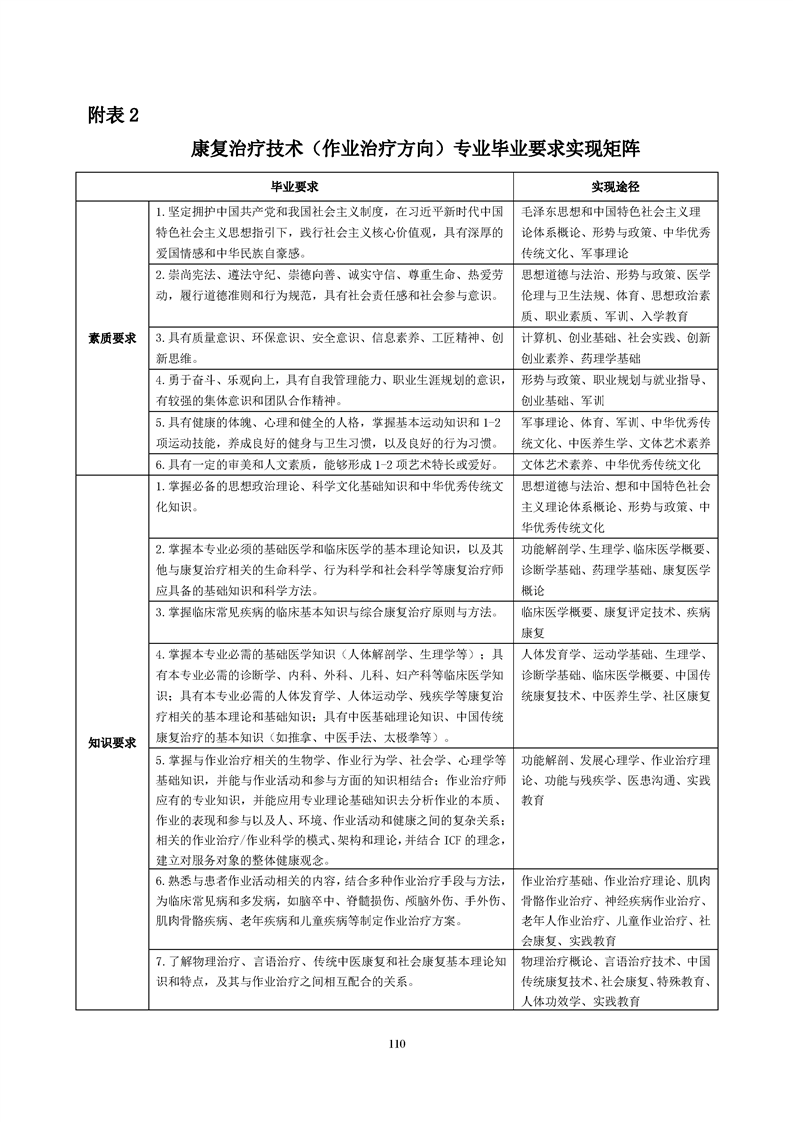 康复治疗技术(作业治疗方向)专业人才培养方案(2022级)