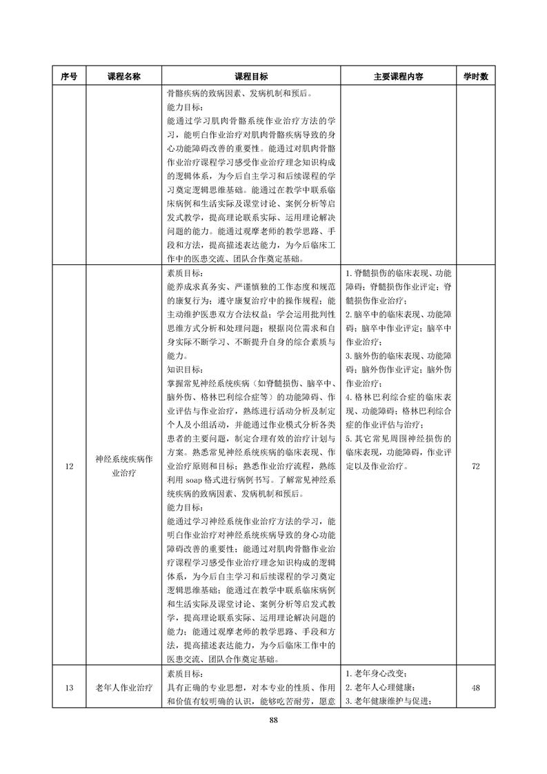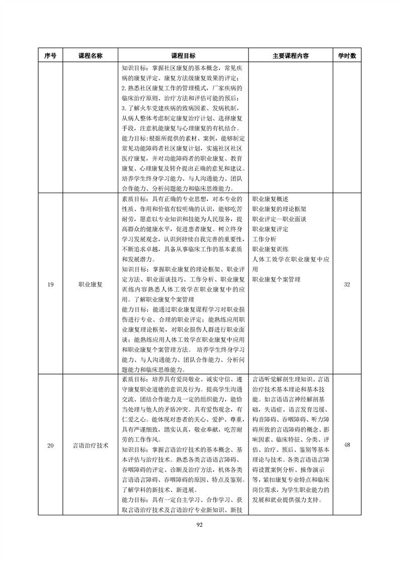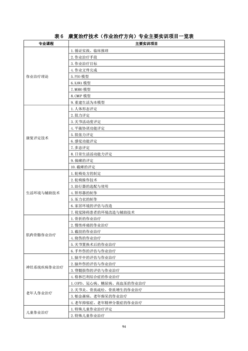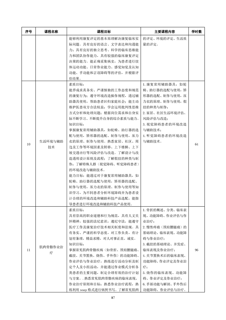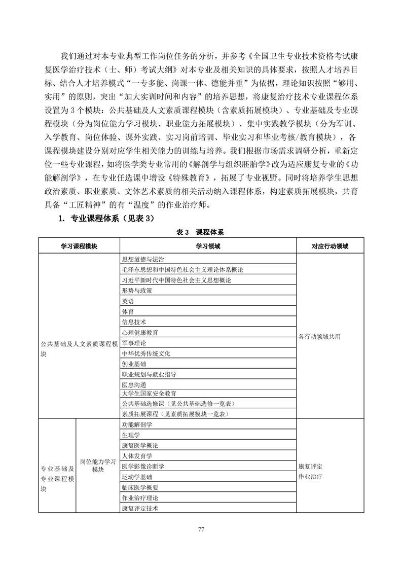 康复治疗技术(作业治疗方向)专业人才培养方案(2022级)