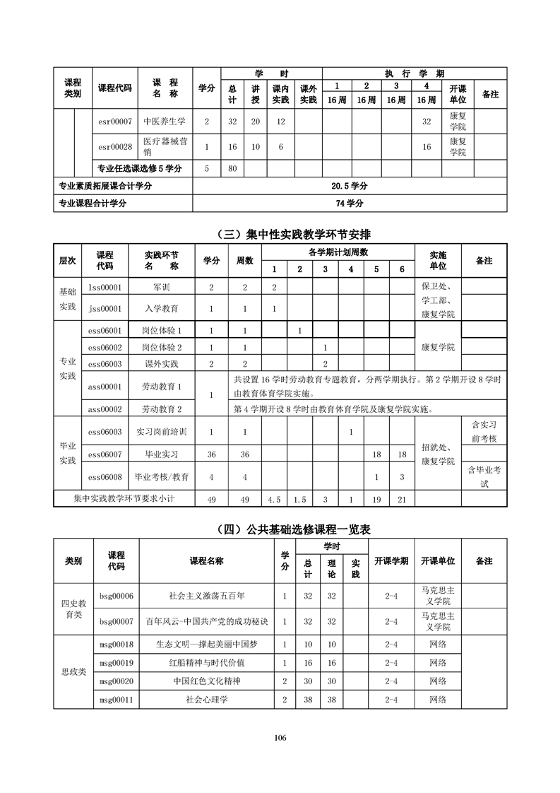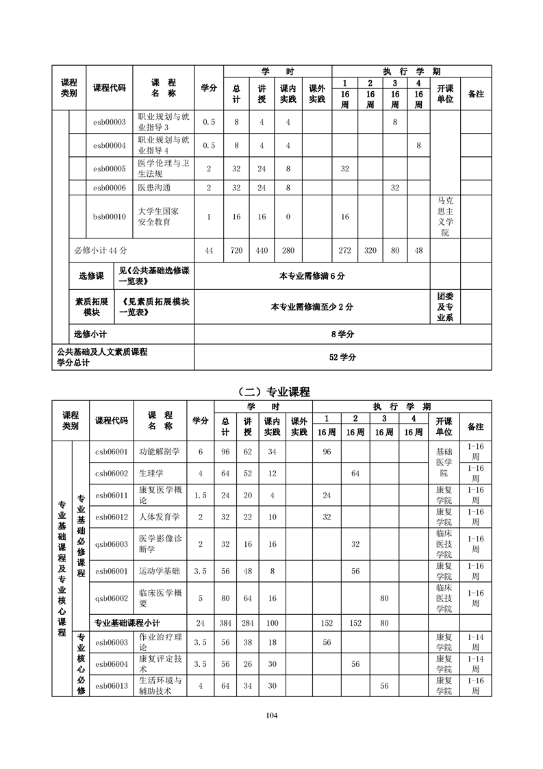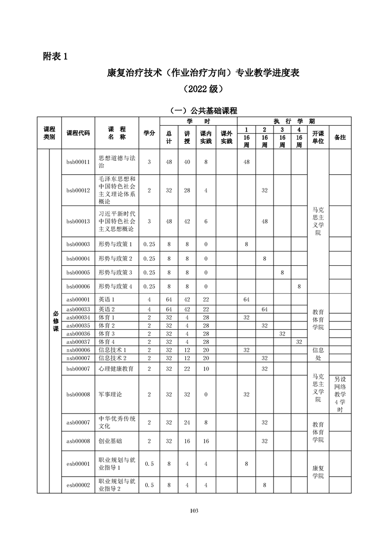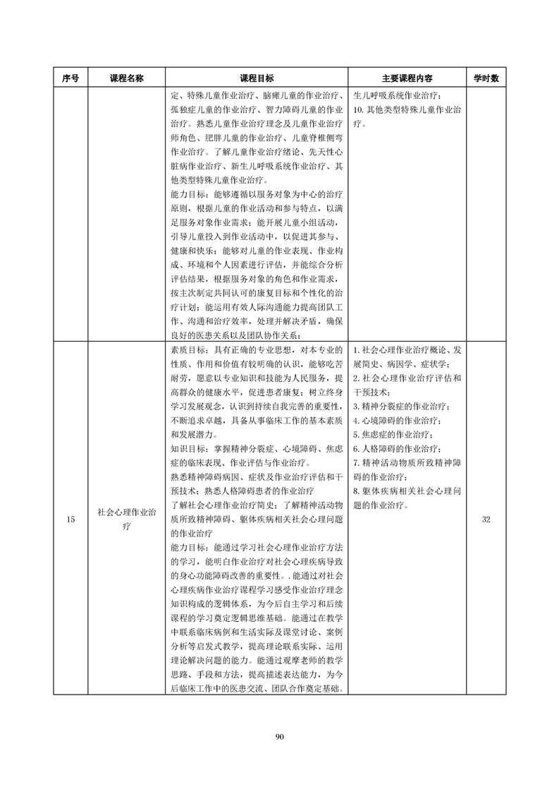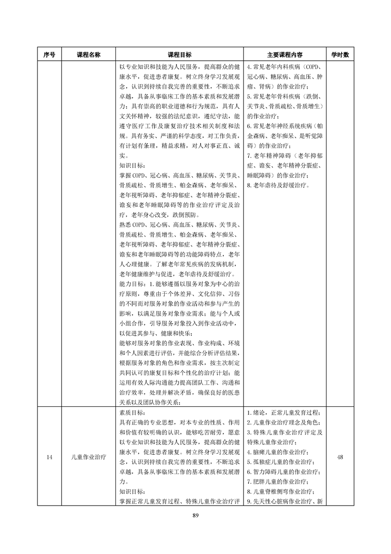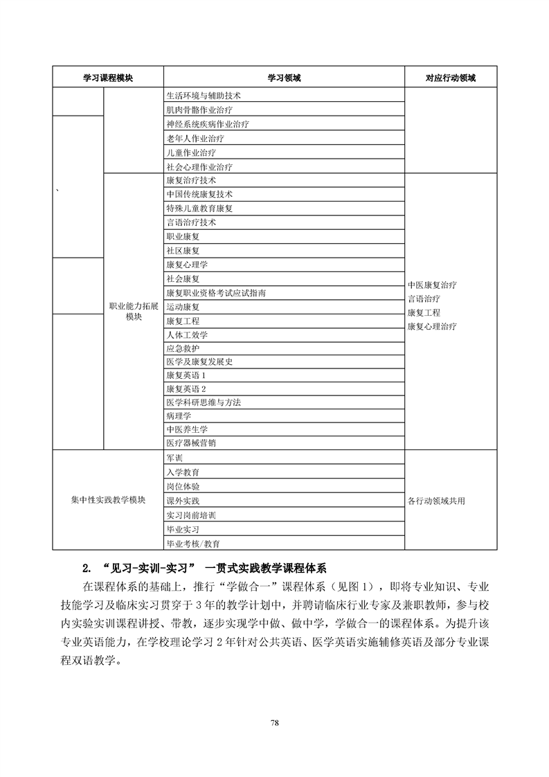 康复治疗技术(作业治疗方向)专业人才培养方案(2022级)