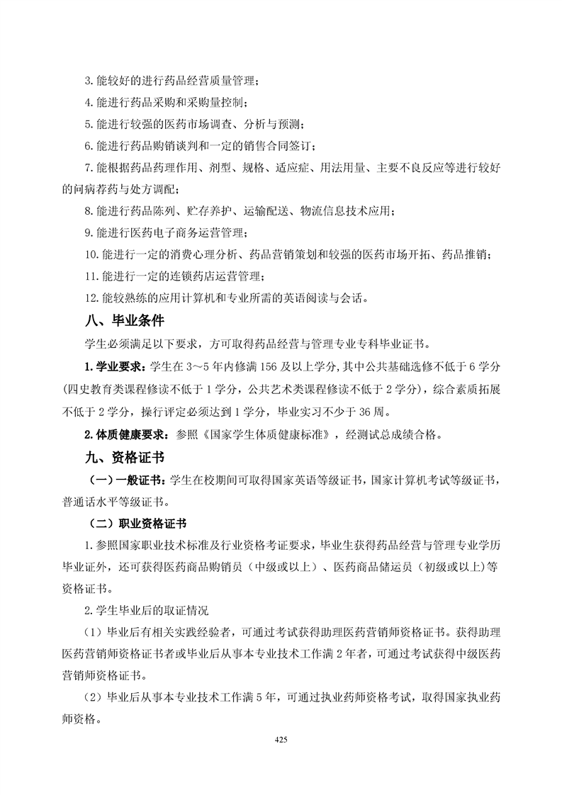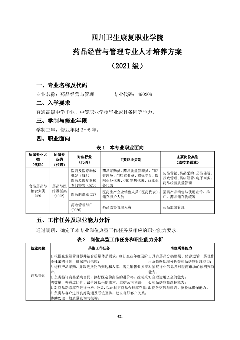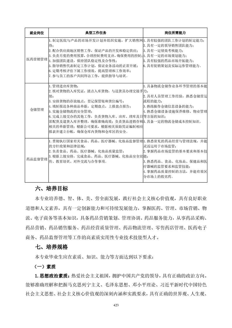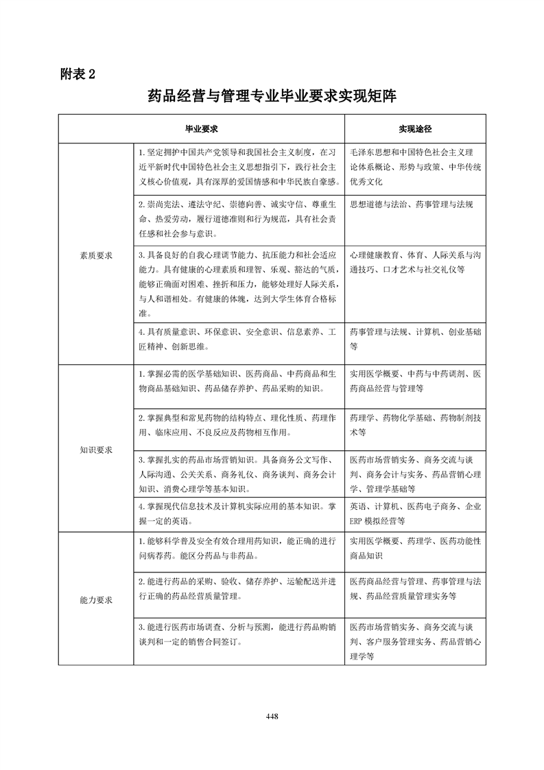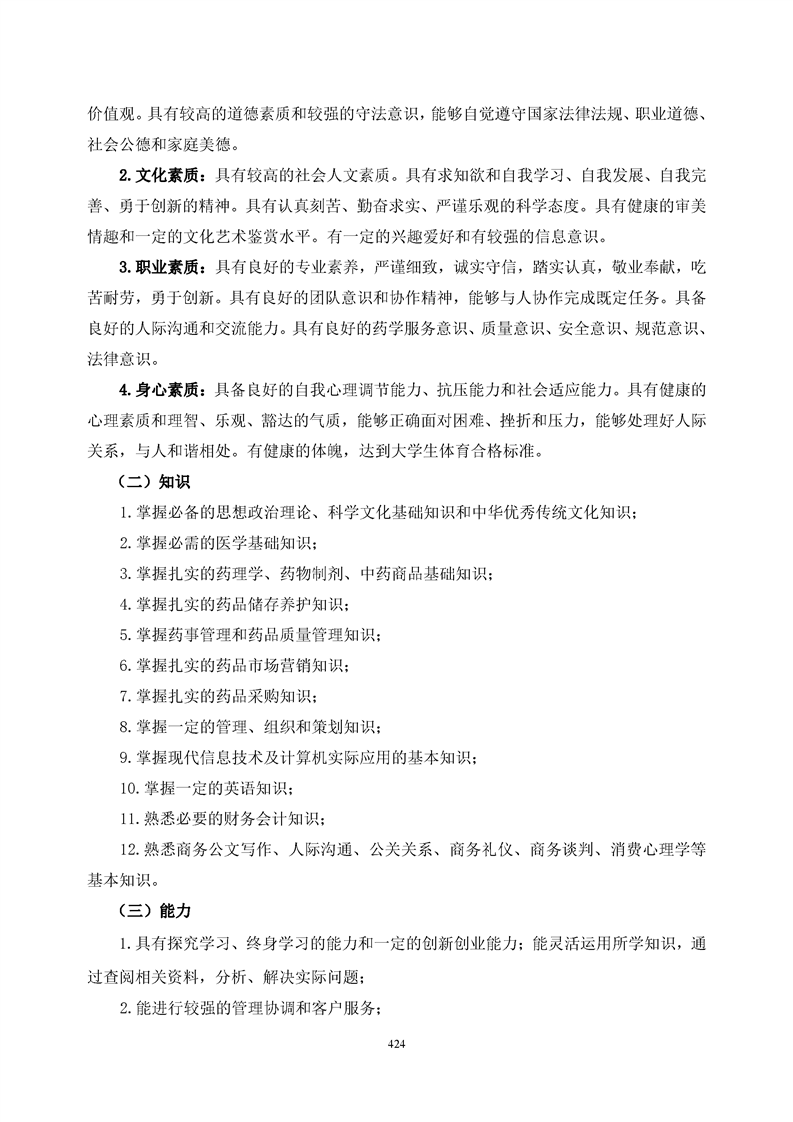 bat365官方网站药品经营与管理专业人才培养方案(2021级)