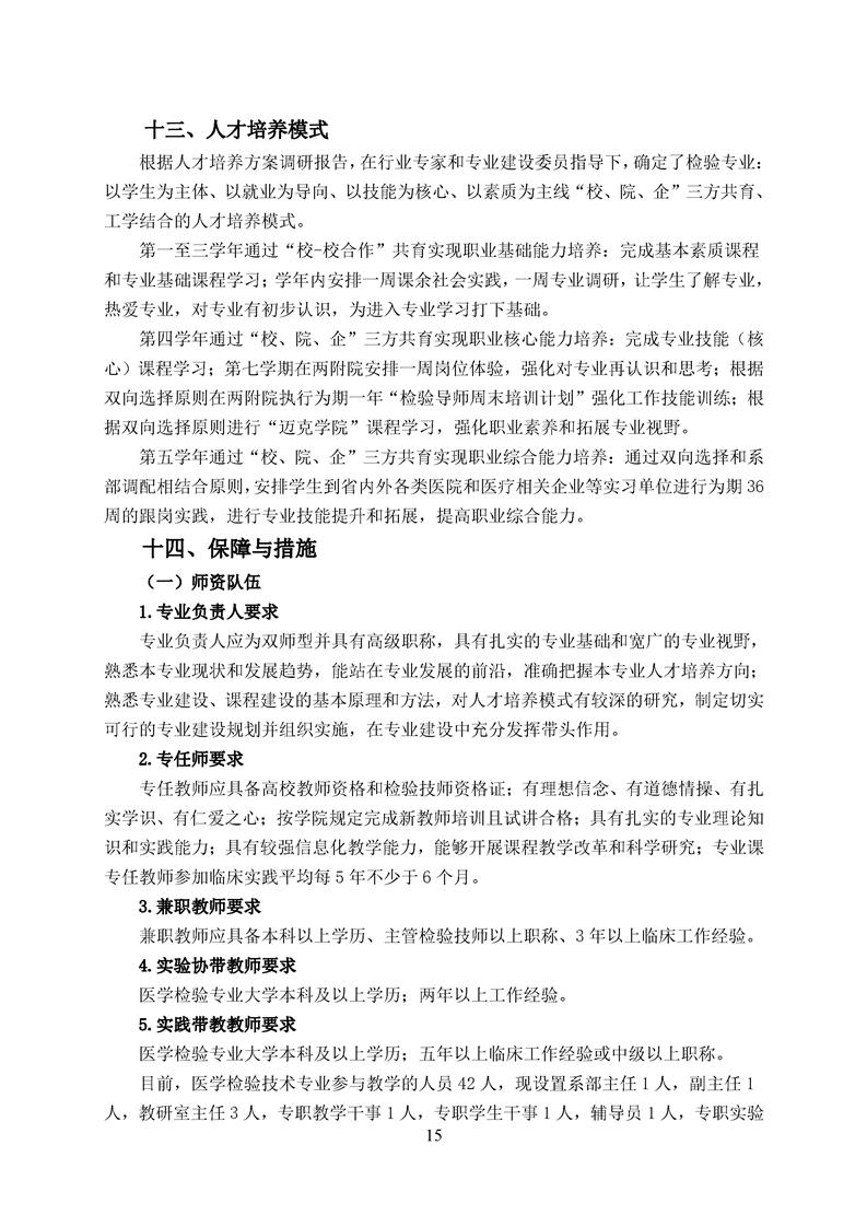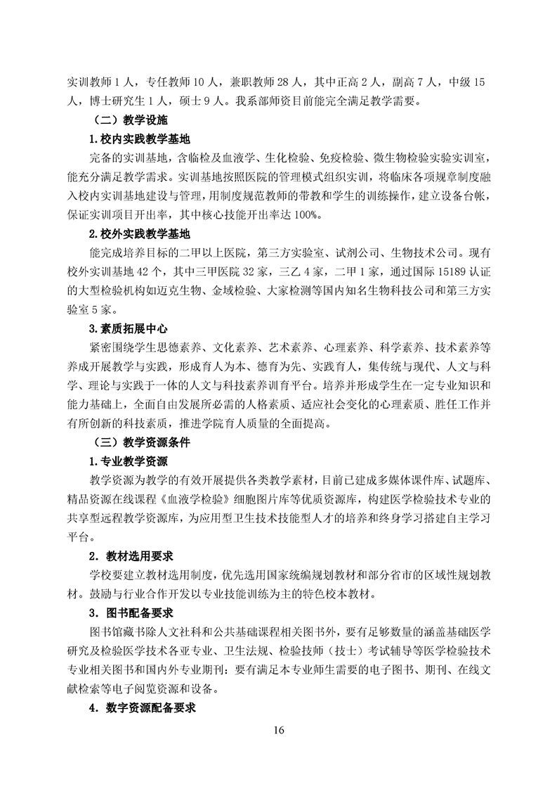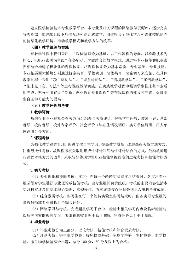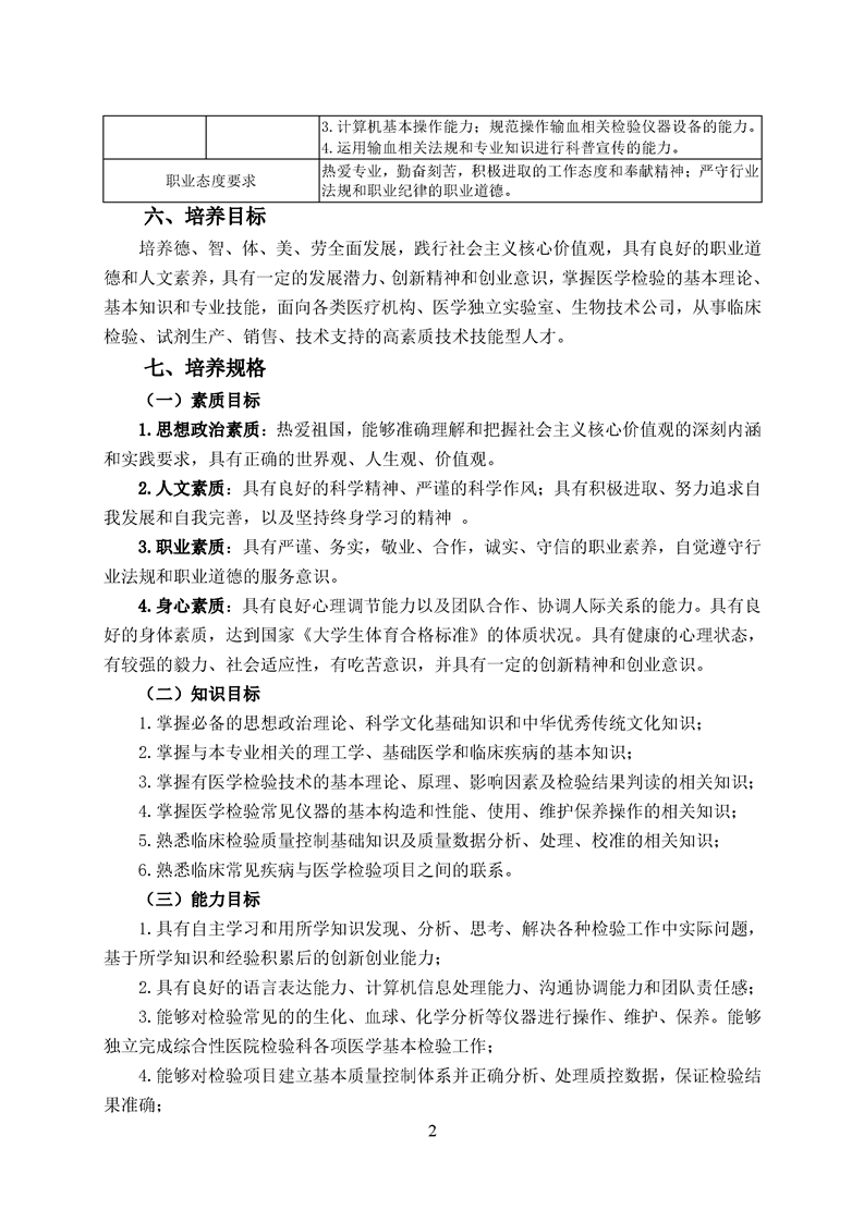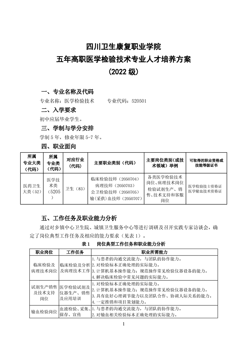 五年高职医学检验技术专业人才培养方案(2022级)