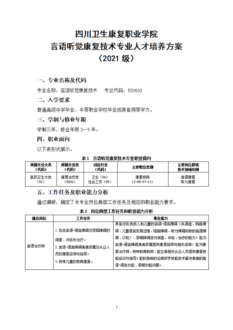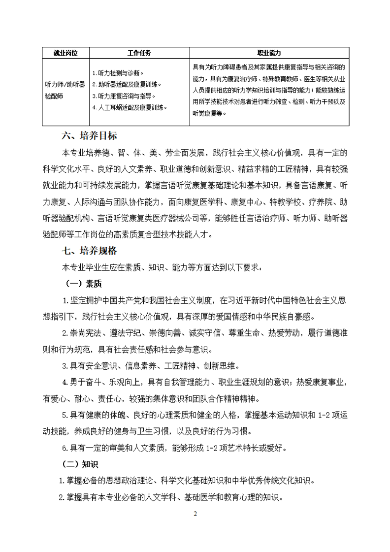 bat365官方网站言语听觉康复技术专业人才培养方案(2021级)
