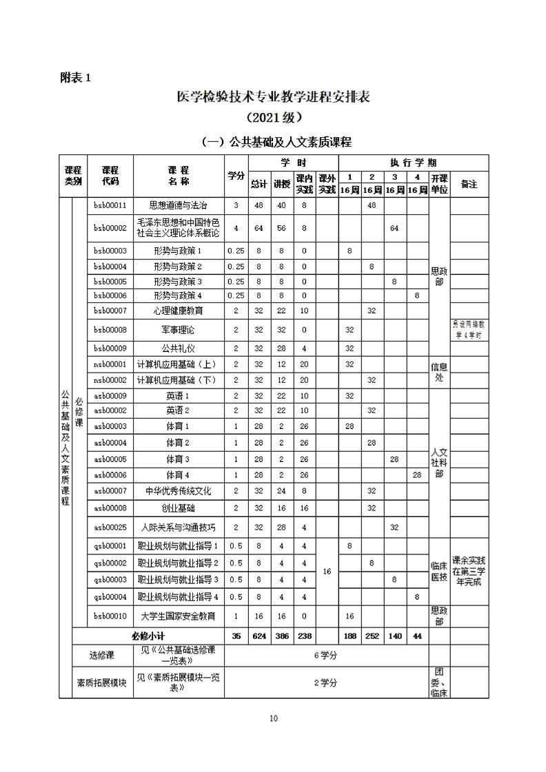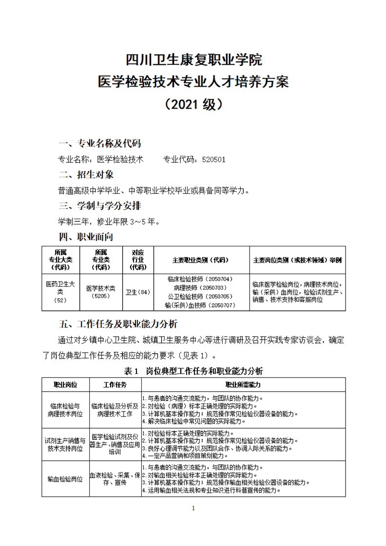 bat365官方网站医学检验技术专业人才培养方案(2021级)