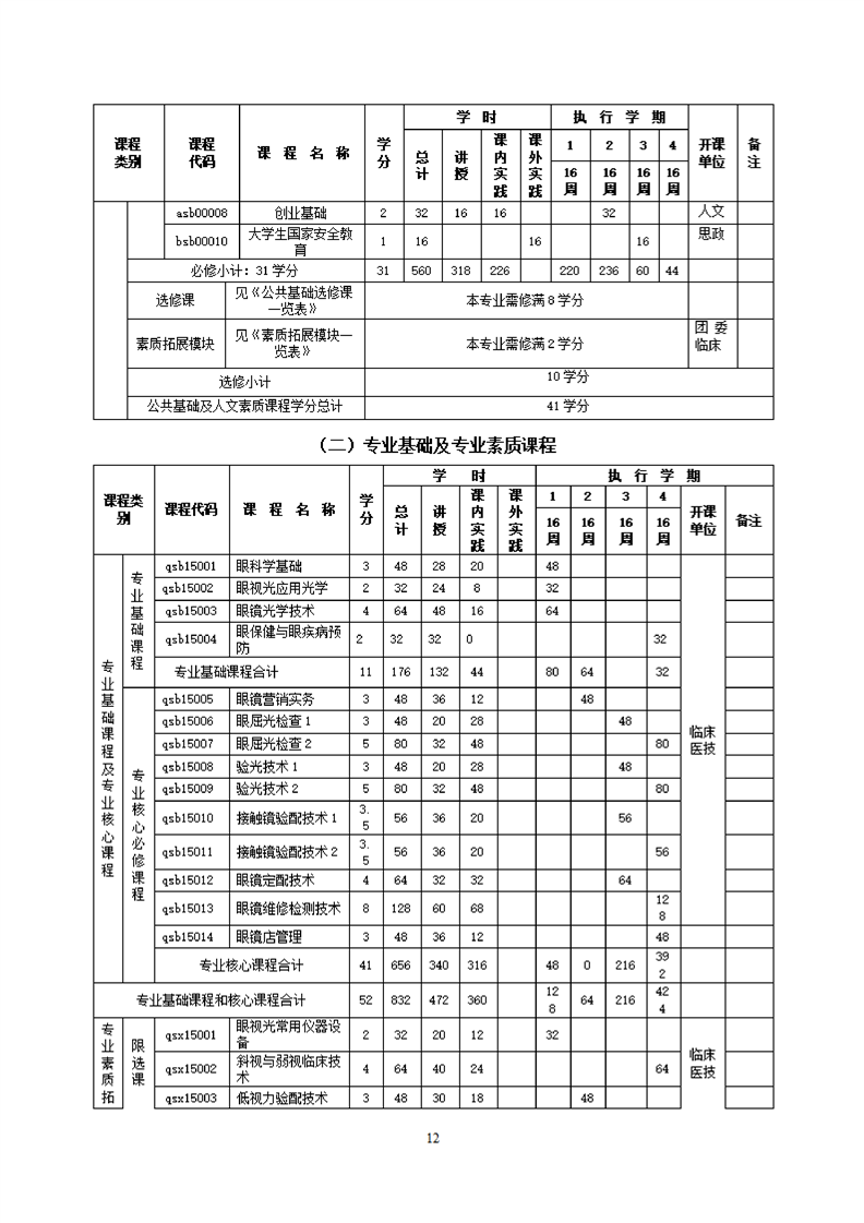 bat365官方网站眼视光技术专业人才培养方案(2021级)
