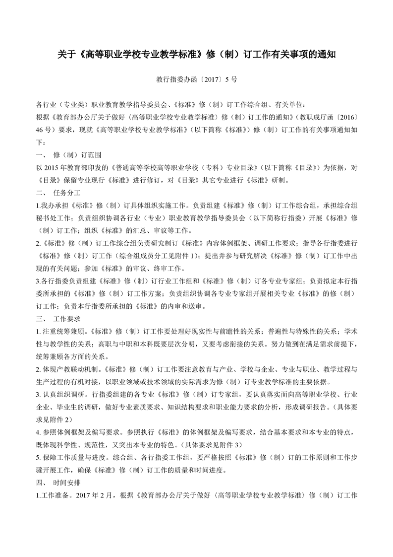 关于《高等职业学校专业教学标准》修(制)订工作有关事项的通知