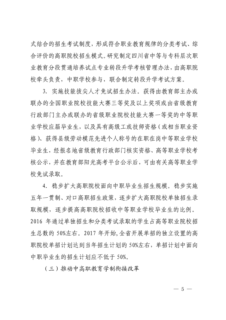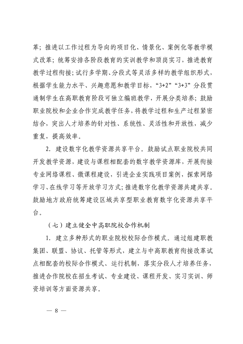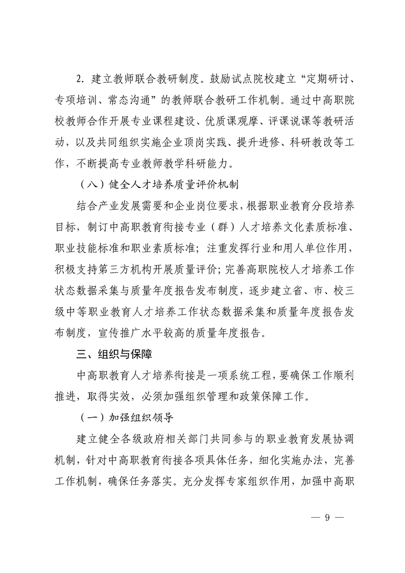 关于开展中等和专科层次职业教育人才培养衔接的指导意见