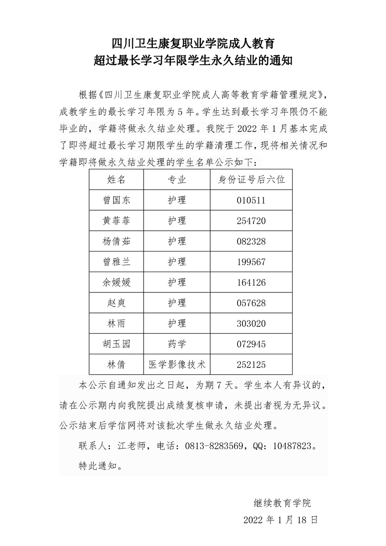 2022年成教永久结业通知