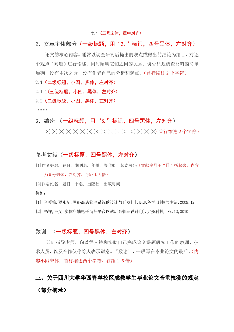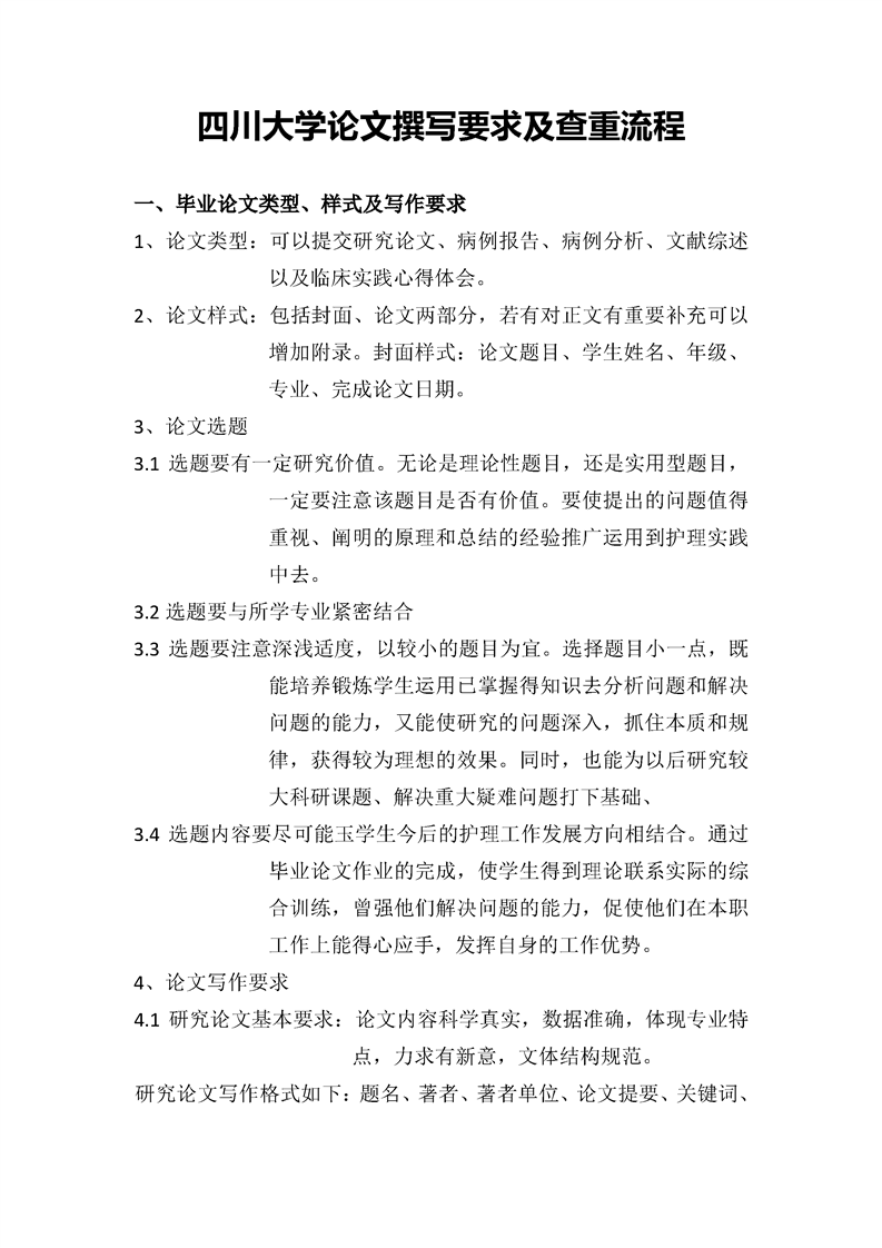 四川大学论文撰写要求及查重流程