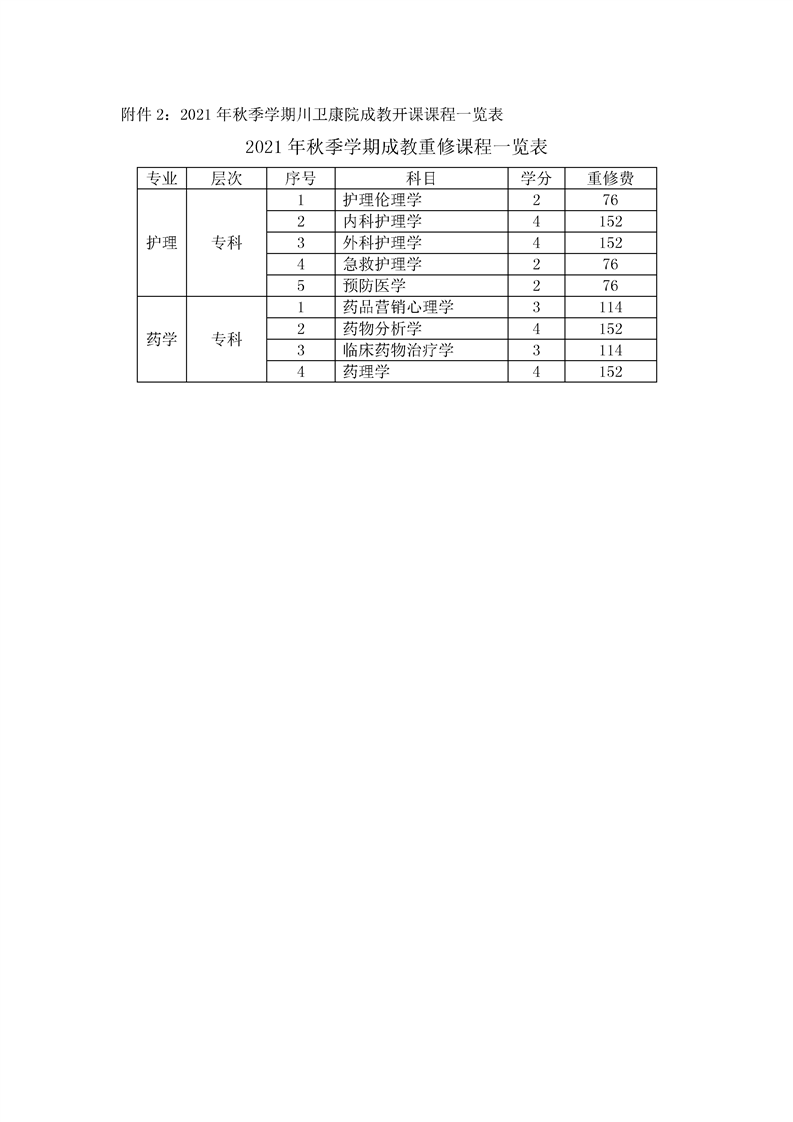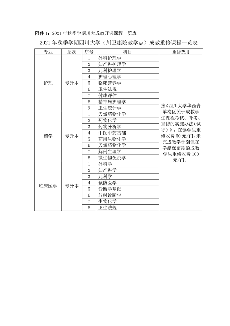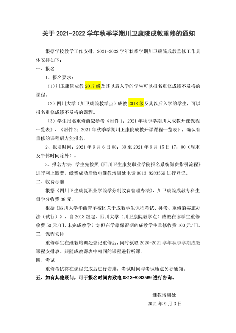 关于2021-2022年秋季学期成教重修的通知