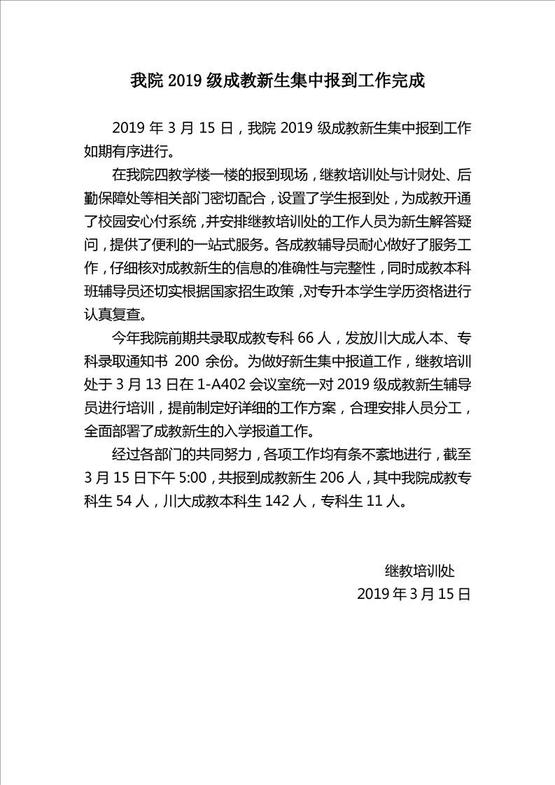 bat3652019级成教新生集中报到工作完成
