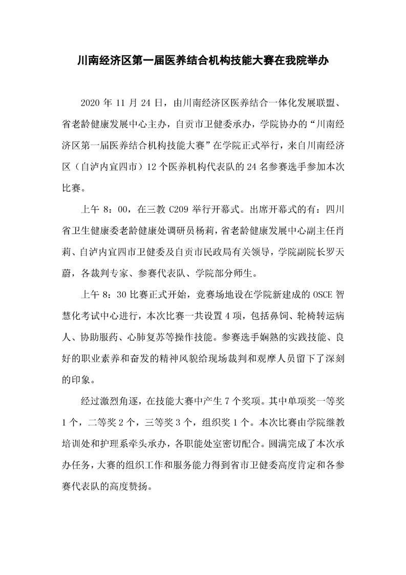 川南经济区第一届医养结合机构技能大赛在bat365举办