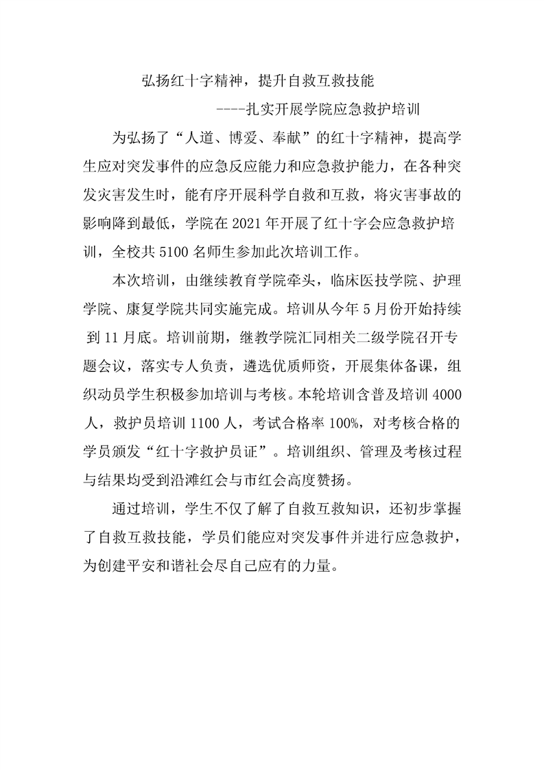 弘扬红十字精神,提升自救互救技能