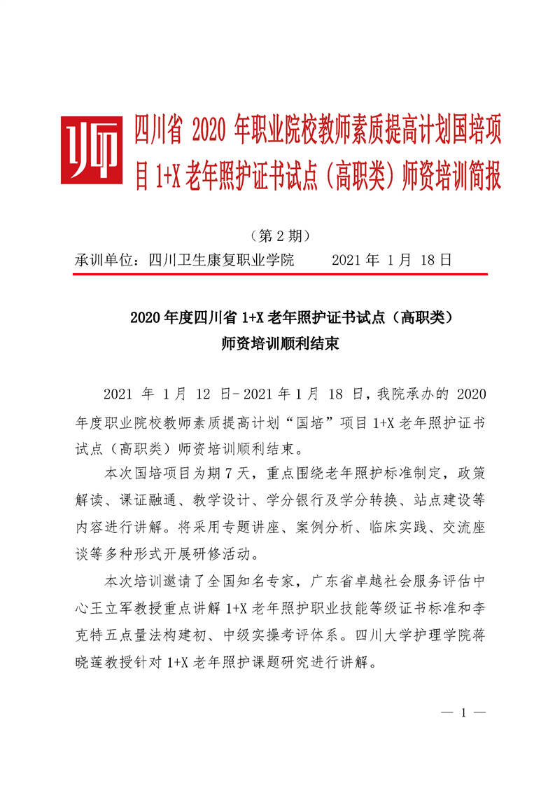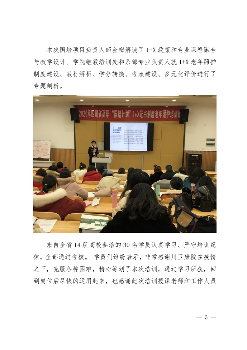2020年度四川省1+X老年照护证书试点(高职类)师资培训顺利结束