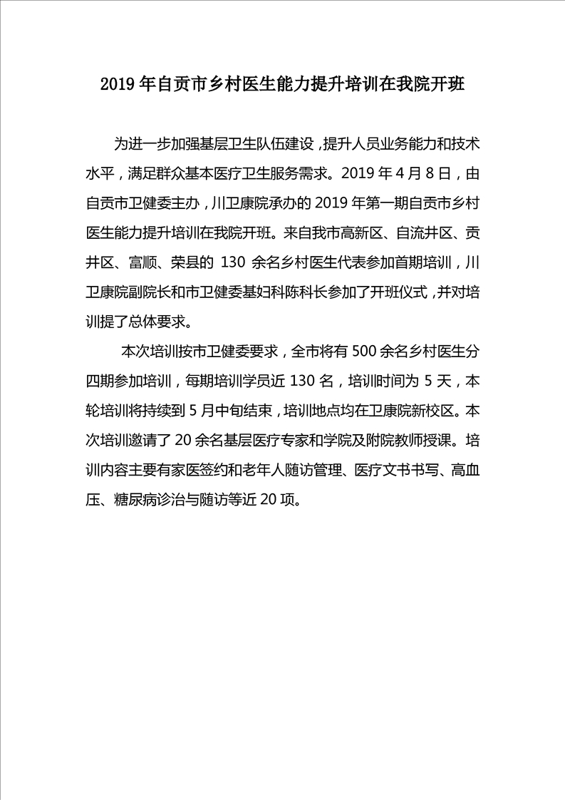 2019年自贡市乡村医生能力提升培训在bat365开班