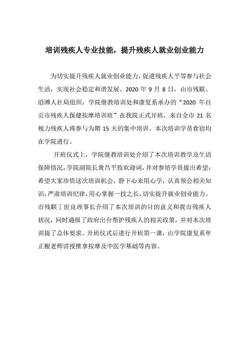 2020年自贡市残疾人保健按摩培训班开班仪式简报