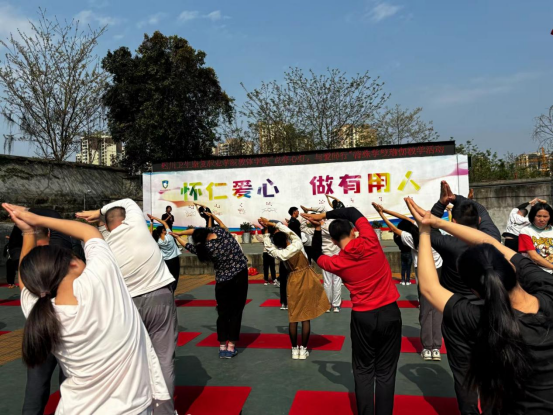 3月27日上午,bat365官方网站教育体育学院师生融合党支部、教育体育学院团总支组织学生志愿者前往自贡特殊儿童学校进行雷锋月志愿活动。为特殊儿童学校学生们普及有氧健身操以及瑜伽,并带领大家进行基本的练习。