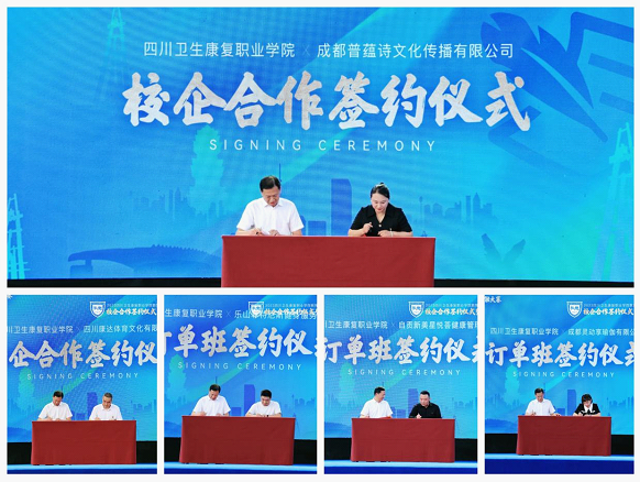 活动开始,黄昌平校长致欢迎词。接着,黄校长与成都普蕴诗文化传播有限公司、四川康达体育文化有限公司企业代表进行校企合作协议的签署,与乐山菲特尼斯健身服务有限公司、自贡新美星悦荟健康管理有限公司、成都灵动享瑜伽有限公司企业代表进行订单班签约,表达合作意向,并对合作提出了殷切希望,签约仪式顺利完成。