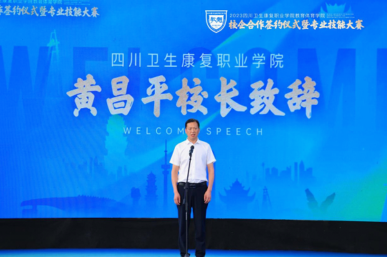 6月26日,为助力学校“双高”建设,进一步深化产教融合,携手企业完善校企合作交流平台,提高学生专业技能水平,教育体育学院隆重举办了2023年校企合作签约仪式暨专业技能大赛。自贡市妇联主席沈焰林、自贡市公安局沿滩分局副局长王大斌,学校校长黄昌平、副校长熊骥、副校长章荣、纪委书记李雁梅,十一家校企合作企业代表,各职能处室、二级学院负责人以及教体学院全体师生参加本次活动。