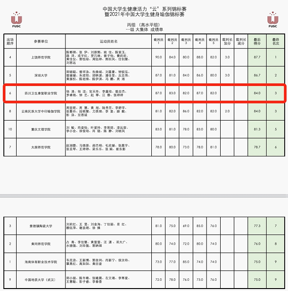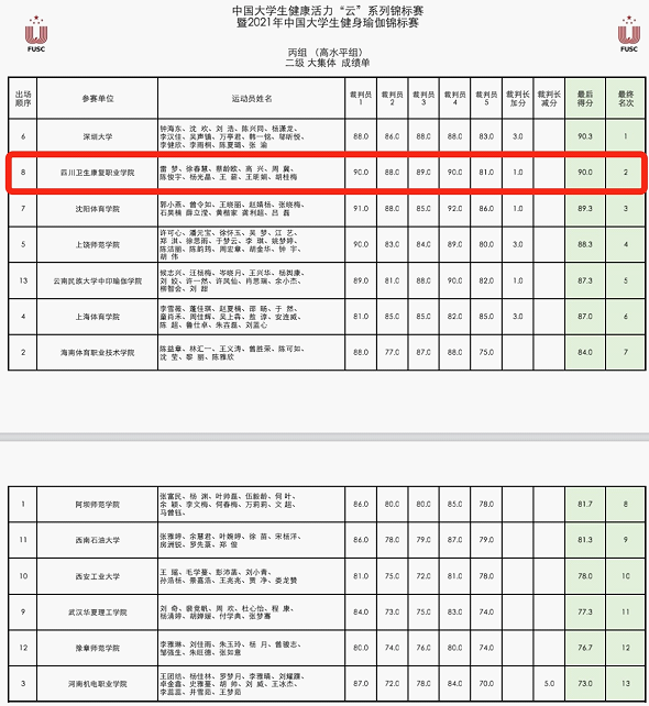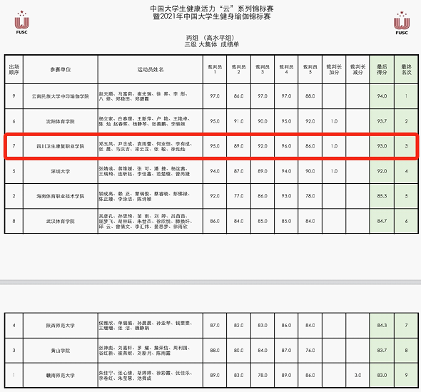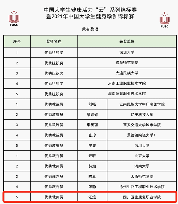 近日,由中国大学生体育协会主办的第16届中国大学生健康活力“云”系列大赛暨2021年中国大学生健身瑜伽锦标赛在线上举行。经过紧张激烈地角逐,bat365休闲体育专业瑜伽专项学生从来自全国64所高校963名参赛选手中脱颖而出,斩获丙组(高水平组)二级大集体第二名、丙组(高水平组)三级大集体第三名,丙组(高水平组)一级大集体第三名的优异成绩,bat365教师江燎获优秀裁判员奖。