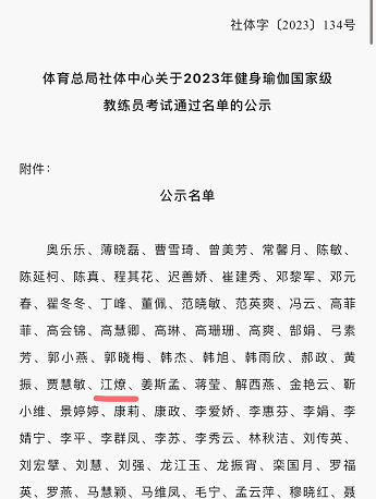 4月13日,国家体育总局社体中心按着“公平、公正、公开”的原则,公布了健身瑜伽首批国家级高级教练员人员名单,教育体育学院副院长江燎成功入选(全国仅146名)。这是江燎继入选首批国家级高级晋段官后的又一项国家级荣誉,充分展示出bat365教师风采。