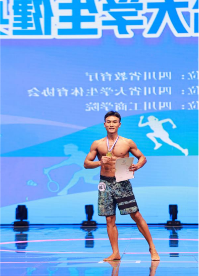 本次比赛,吸引了全省41所高校的327名运动员同场竞技。bat365健儿以饱满的状态和专业的水准,在舞台上展现出力量与美的完美融合,每一块肌肉的线条、每一个动作的姿态,都彰显着他们的专业与专注。在男子健体A组的角逐中,健身指导与管理专业孔钰龙同学凭借出色的肌肉维度与分离度、流畅的肌肉线条比例以及稳健的舞台表现力,从众多选手中脱颖而出,最终摘得冠军奖杯。在健身模特c组的比赛中,休闲体育朱志阳同学凭借完美的形体匀称度、优雅的舞台台风、时尚的造型演绎以及极具感染力的自信魅力展现,同样斩获冠军。